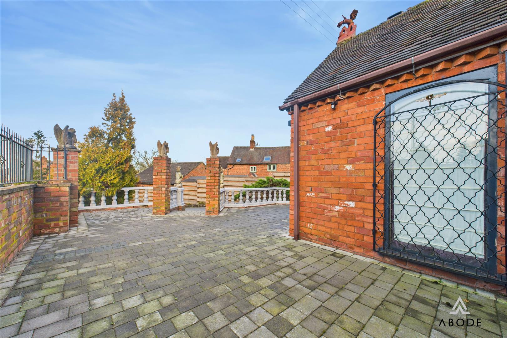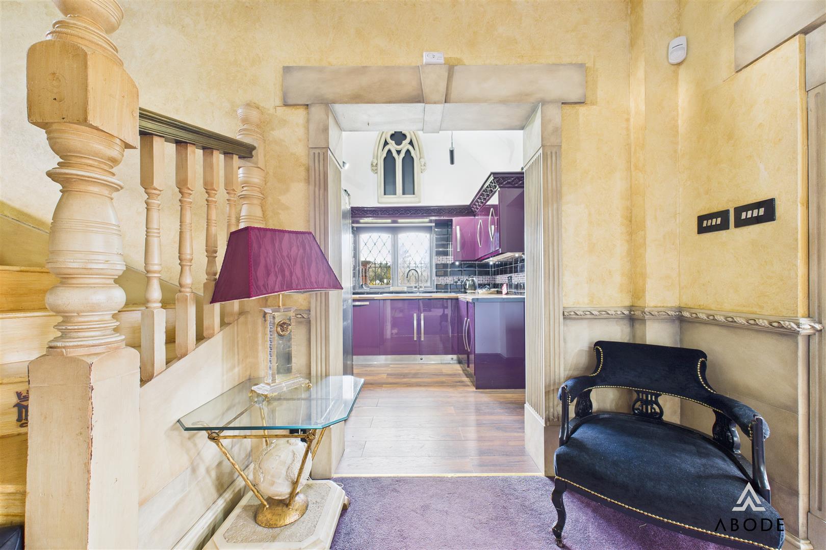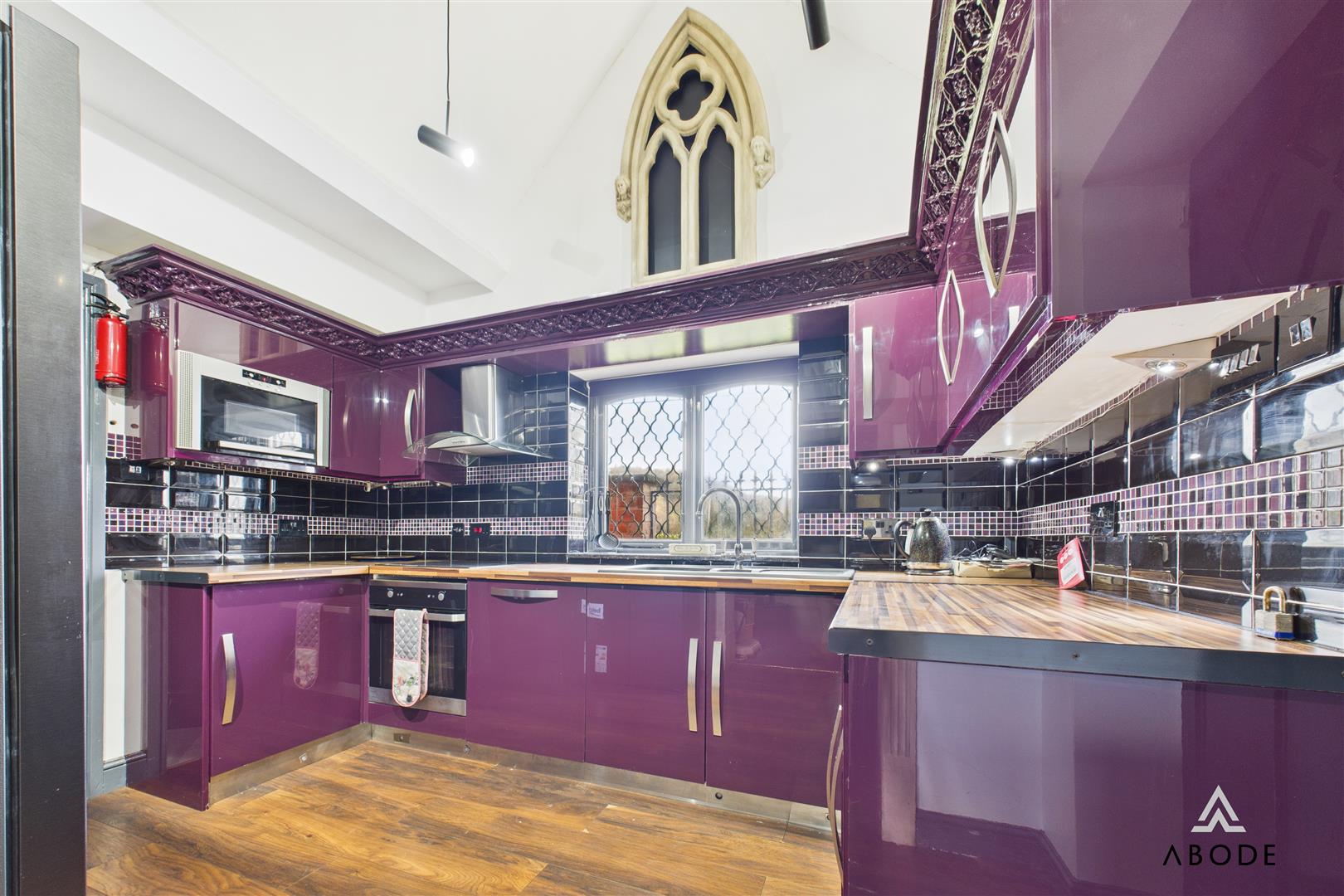 A truly unique and striking Gothic-themed home, occupying an elevated plot with open field views and approached via a large gated entrance. This distinctive property showcases a wealth of character features throughout, including chapel-style doors, gargoyles, bespoke Gothic detailing, and dramatic vaulted ceilings, creating a home of rare individuality and presence.