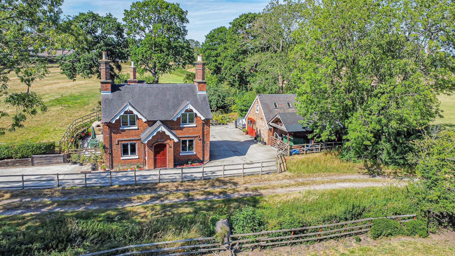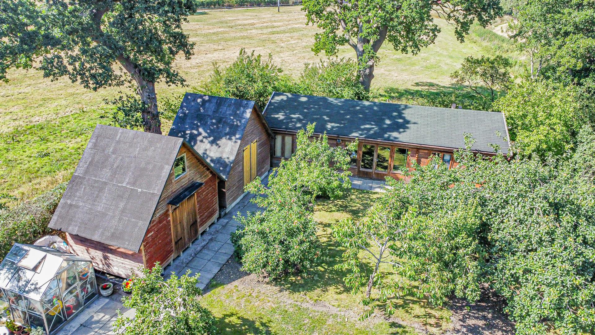 Set along a secluded private driveway on the outskirts of the sought-after village of Sudbury, this charming detached Victorian country home dates back to the 1870s and sits on an extensive 0.35-acre plot. The property boasts a wealth of character and versatility, enhanced by a substantial collection of outbuildings, including a self-contained annexe, large workshop/home office, log cabin, multiple storage sheds, greenhouses, and a covered car port.