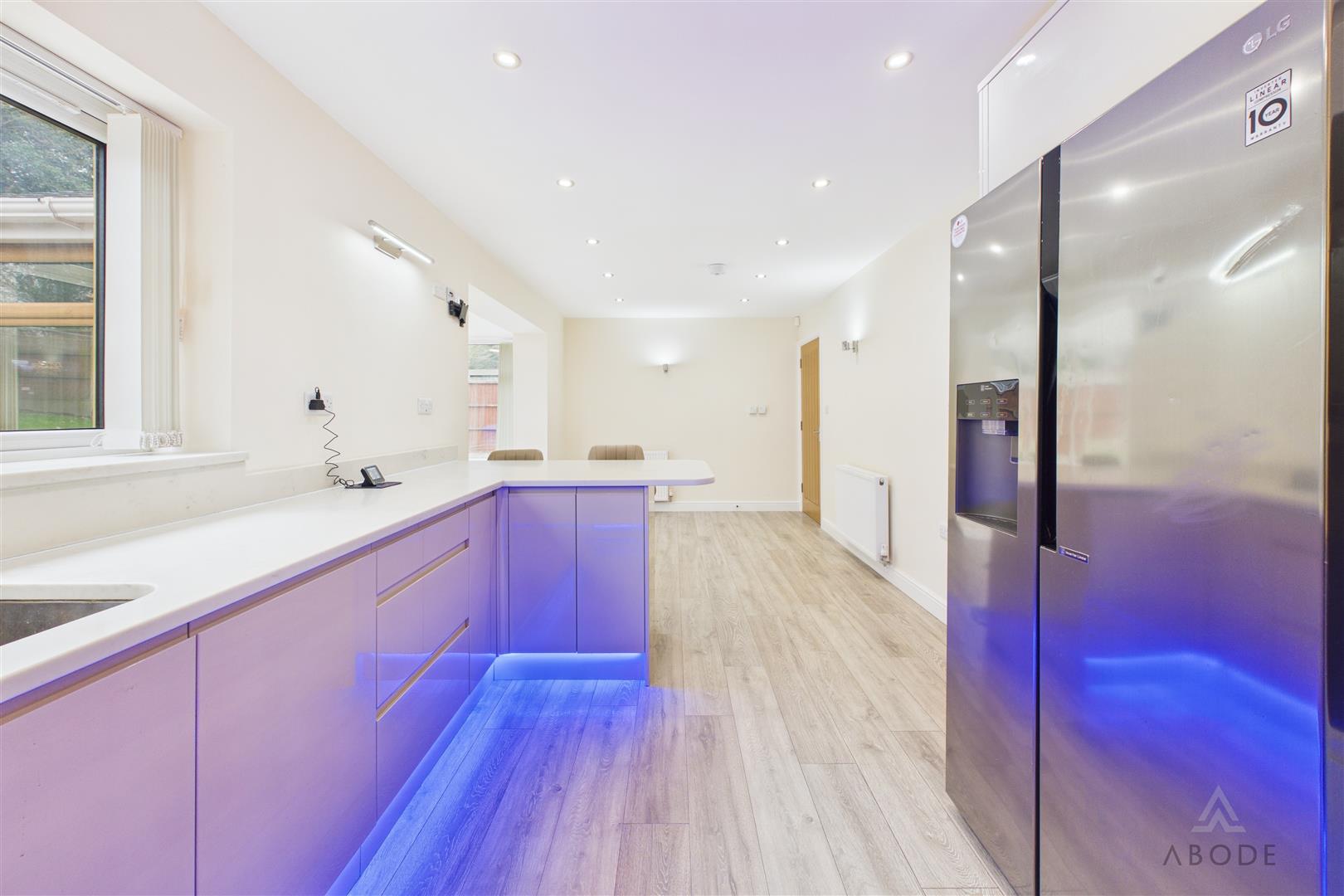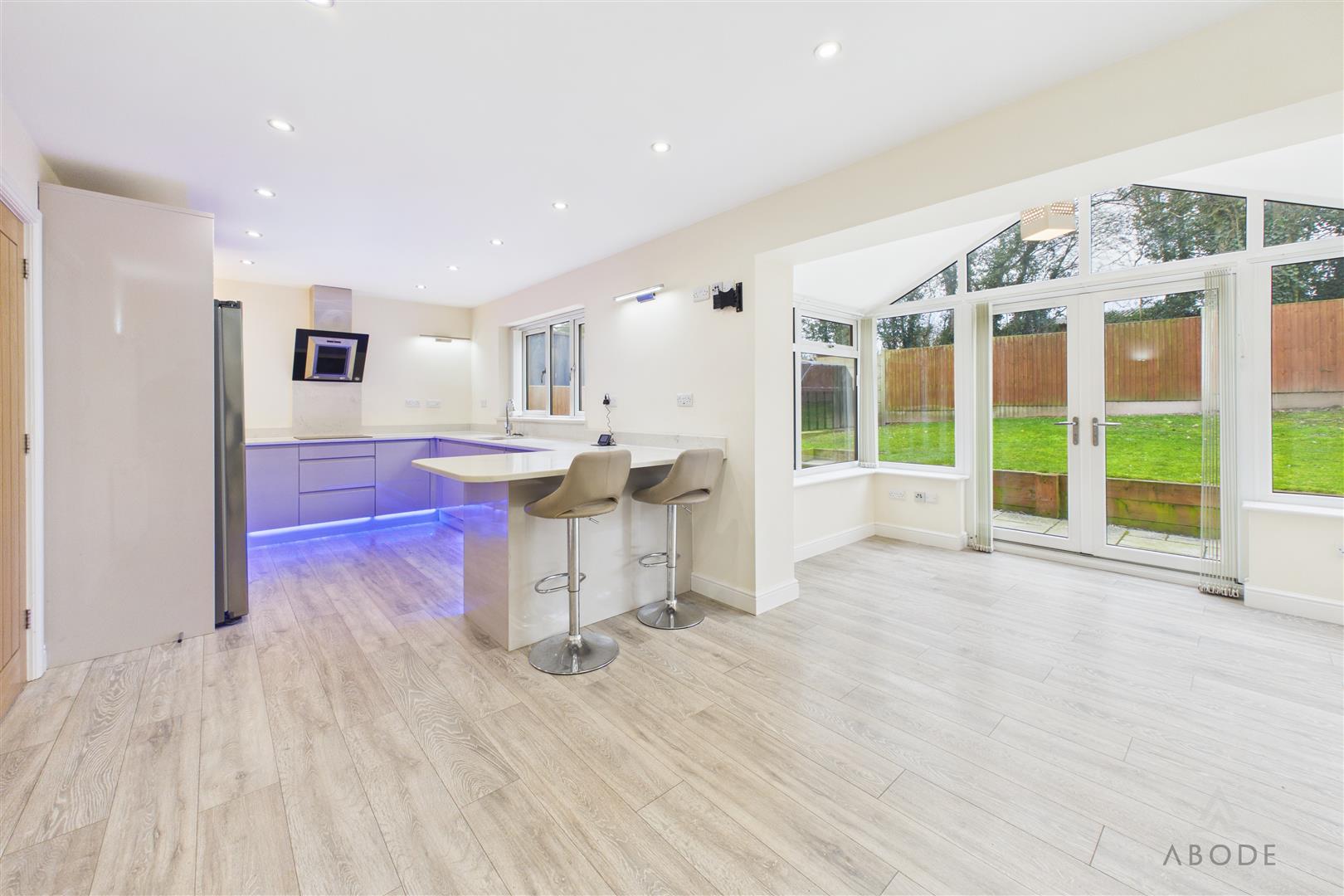 The ground floor is entered via a welcoming entrance hallway that leads to two well-proportioned reception rooms, ideal for use as formal living and dining areas, a family room, or home office space. To the rear, the kitchen forms the central hub of the home and is complemented by a separate utility room and internal access to a double garage. A bright sun room extends from the kitchen, providing an additional seating or dining area with views and access to the garden, while a conveniently located ground-floor shower room enhances practicality.