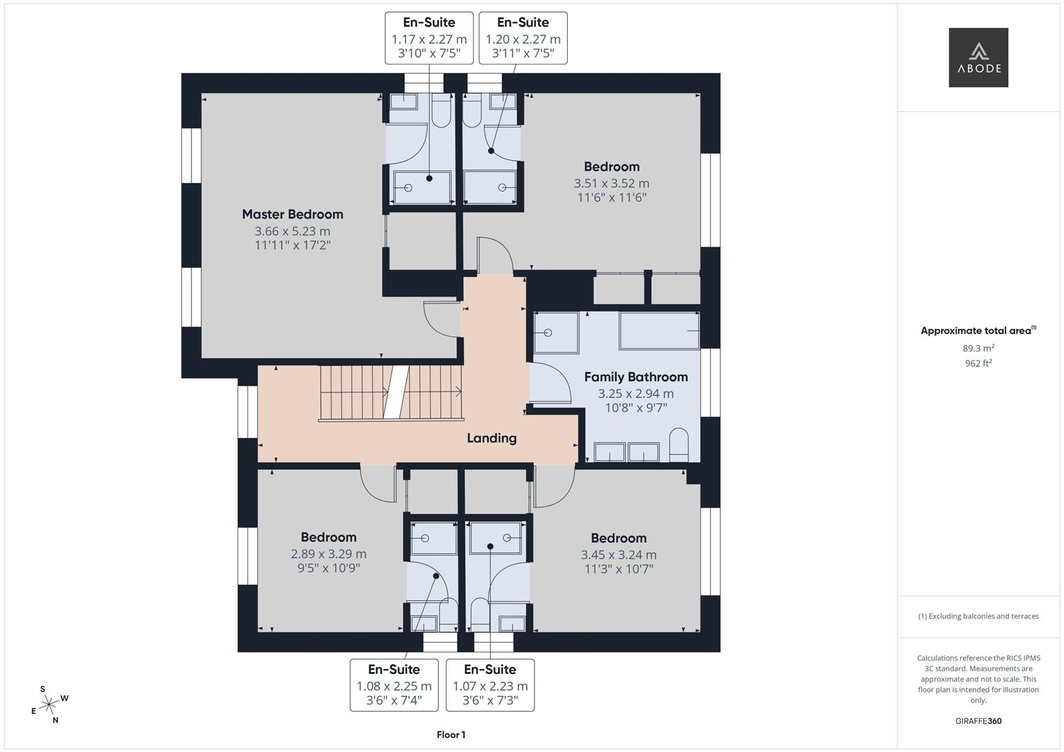 - First floor offers a master bedroom with en-suite, three further double bedrooms each with en-suite, plus a modern family bathroom.