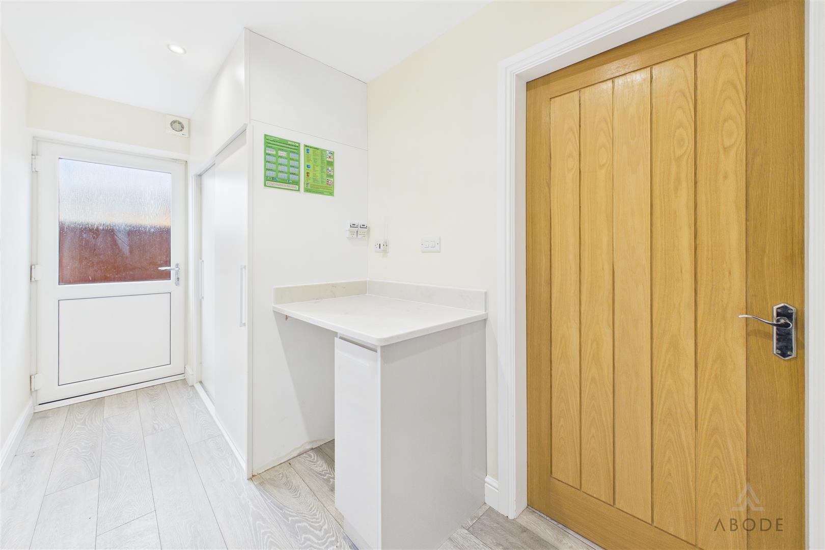 - Kitchen serves as the central hub, complemented by a utility room and internal access to a double garage.