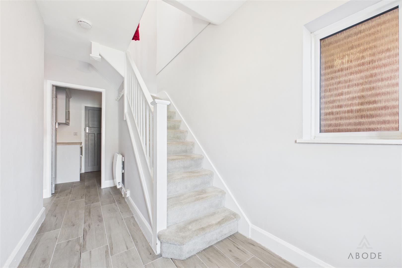 Accessed via a uPVC double glazed front door with a frosted side window, the hallway features a staircase rising to the first-floor landing, an electric radiator, smoke alarm, and internal…