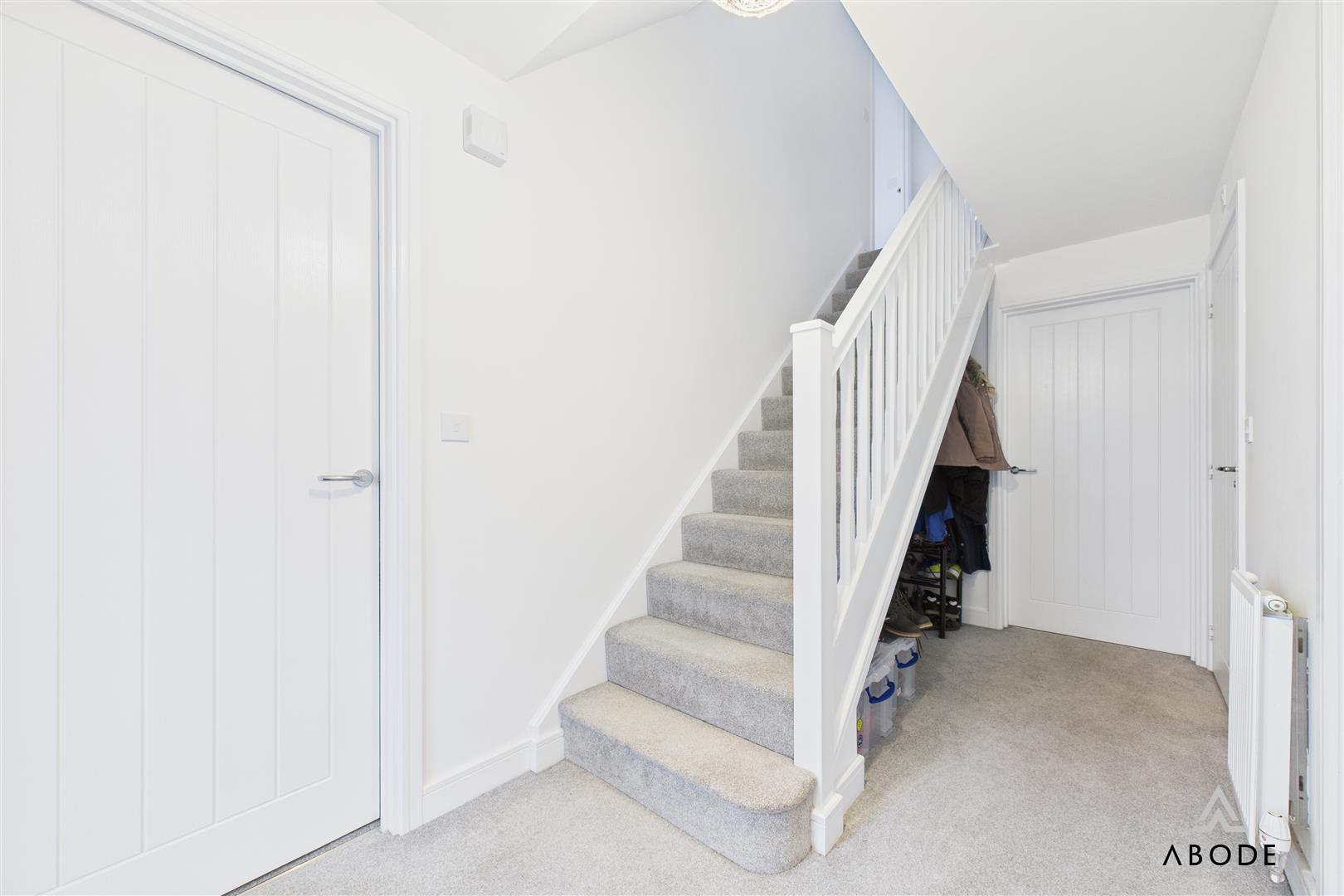 Accessed via a stylish composite front door with doorbell chime, the welcoming hallway features a smoke alarm, staircase rising to the first-floor landing, and a central heating radiator.…