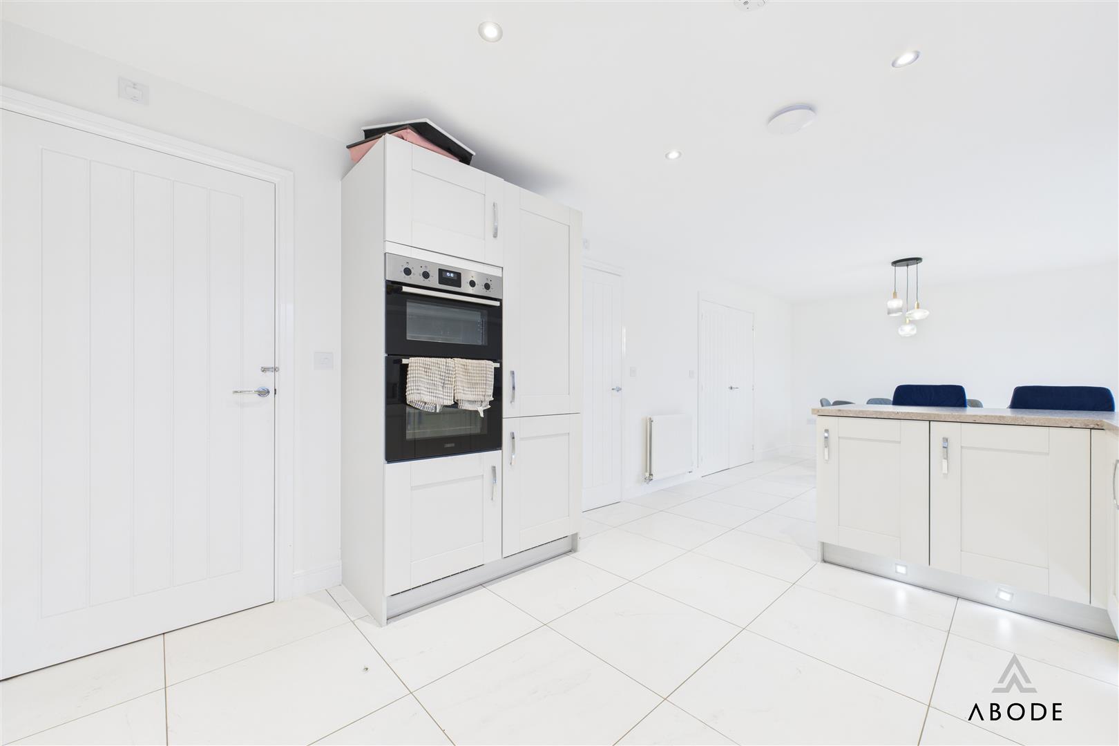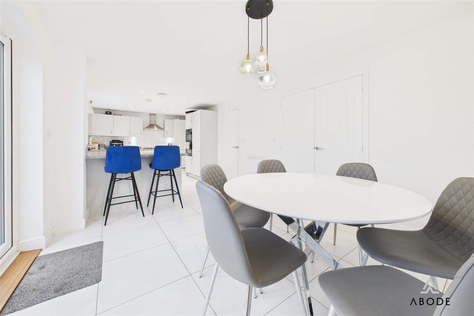 A beautifully presented modern family home, ready for immediate occupation and enjoying a south-facing rear garden. The property features a welcoming hallway with useful storage and a cloakroom, a versatile front study, and superb open-plan ground-floor living space with a high-specification kitchen/dining area, integrated appliances, breakfast bar, and French doors opening to the garden, complemented by a practical utility room.