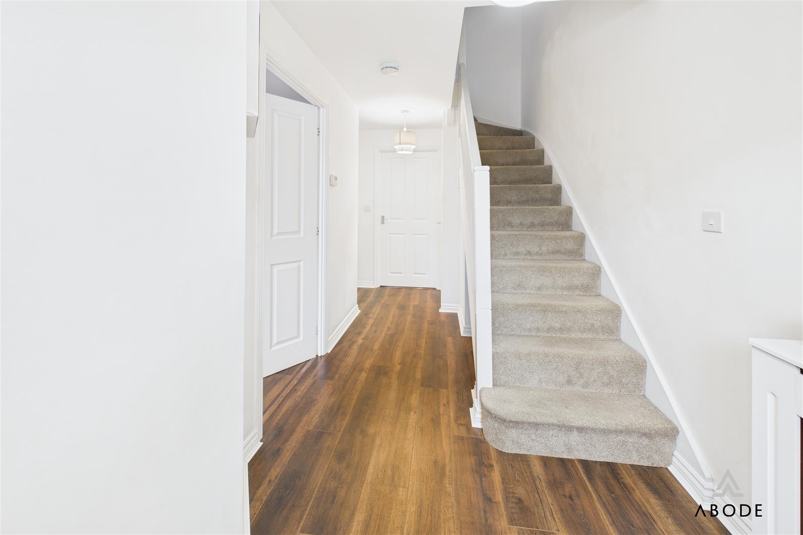 Entrance door into the hall with stairs to the first floor, radiator, under stairs storage cupboard and doors to -
