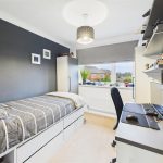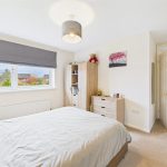 The master bedroom is a standout feature – a large, bright room with dual built-in wardrobes and peaceful views over greenery to the front. It benefits from its own en-suite, fitted with a corner shower, wash hand basin and WC.