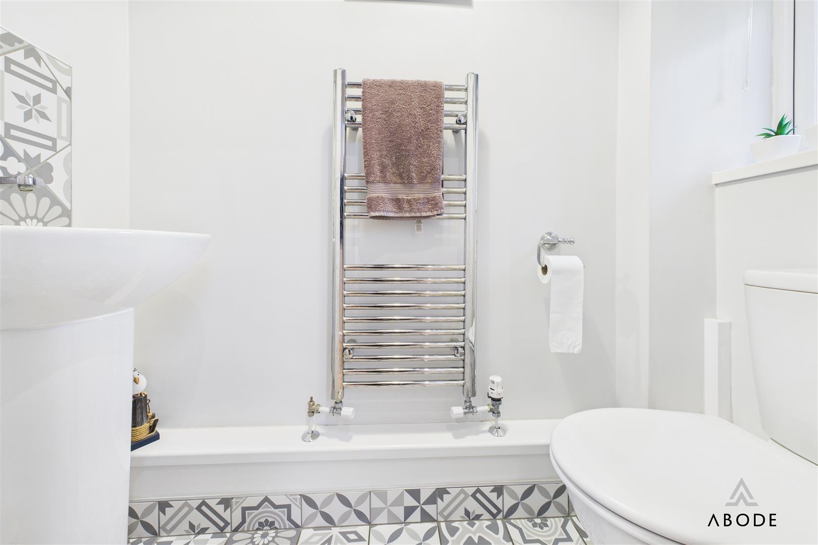 Completing the ground floor is a modern WC, fitted with stylish tiling and a chrome heated towel rail.