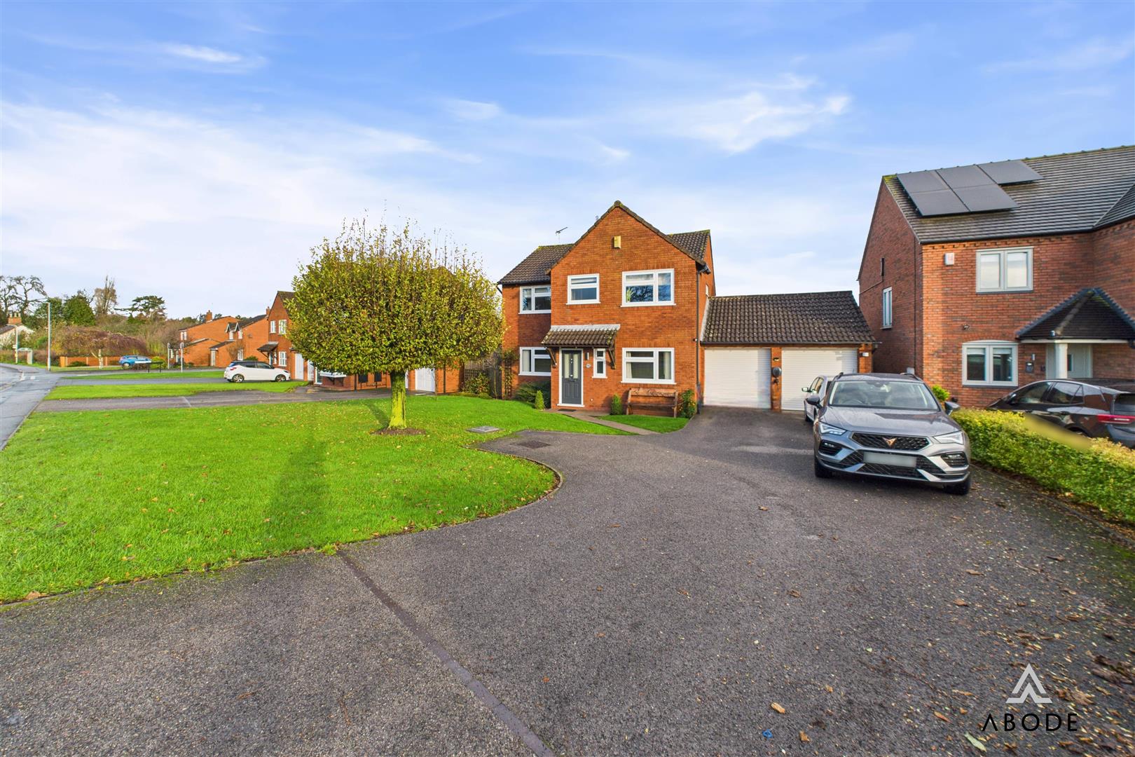 The property enjoys a generous frontage with a large driveway providing excellent off-street parking and access to the double garage. The front has an impressive size laid to lawn garden, which could be used for further parking.