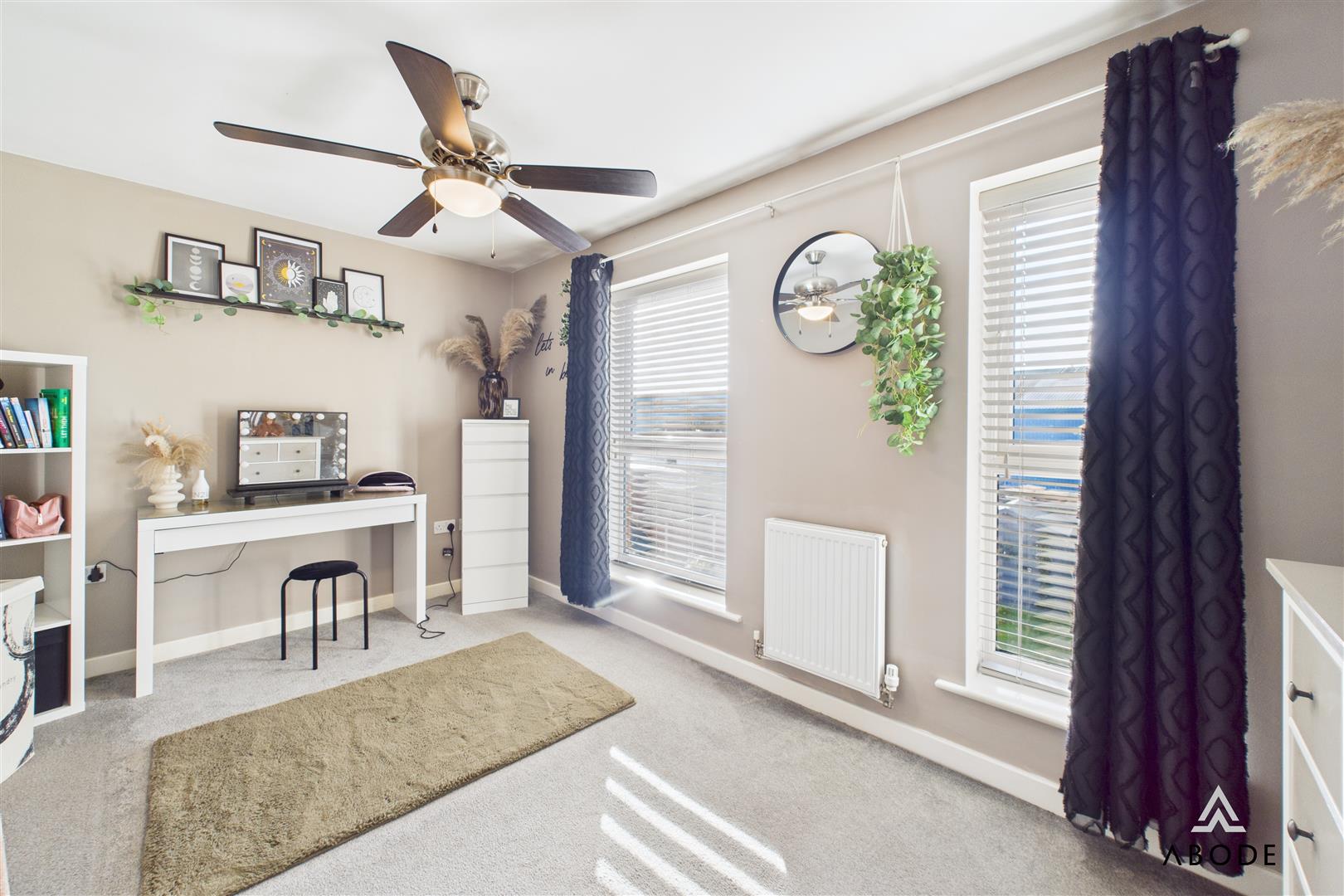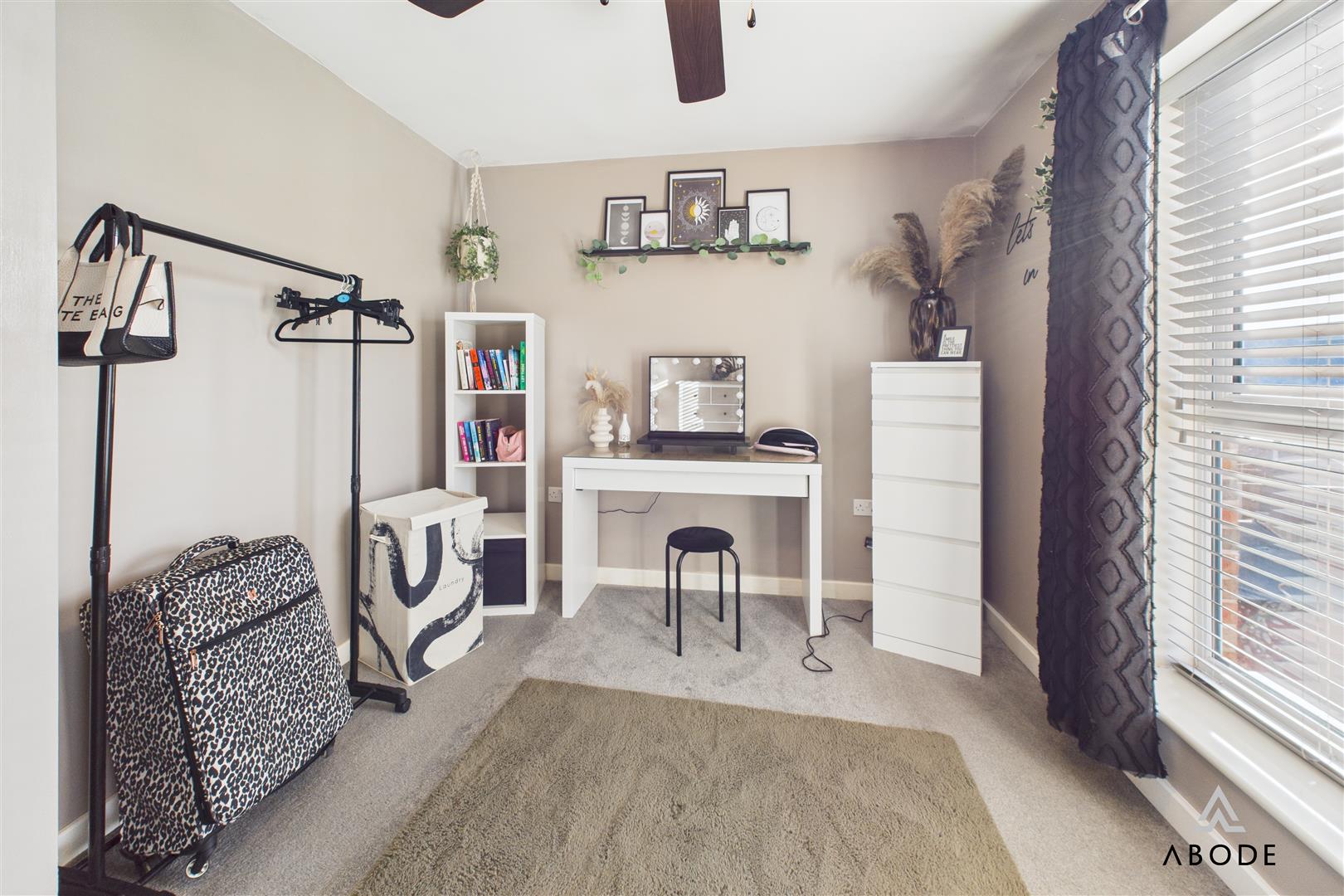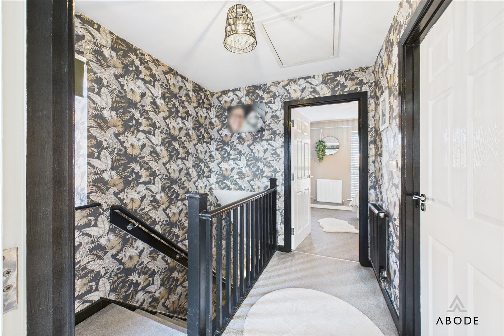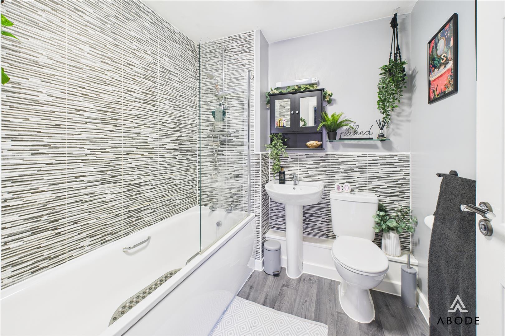 The first-floor landing gives access to two well-proportioned double bedrooms, both enjoying good natural light and comfortable floor space, with the main bedroom positioned to the front elevation. The family bathroom is finished with a modern three-piece suite, including a bath with shower over, wash-hand basin, and low-level WC.