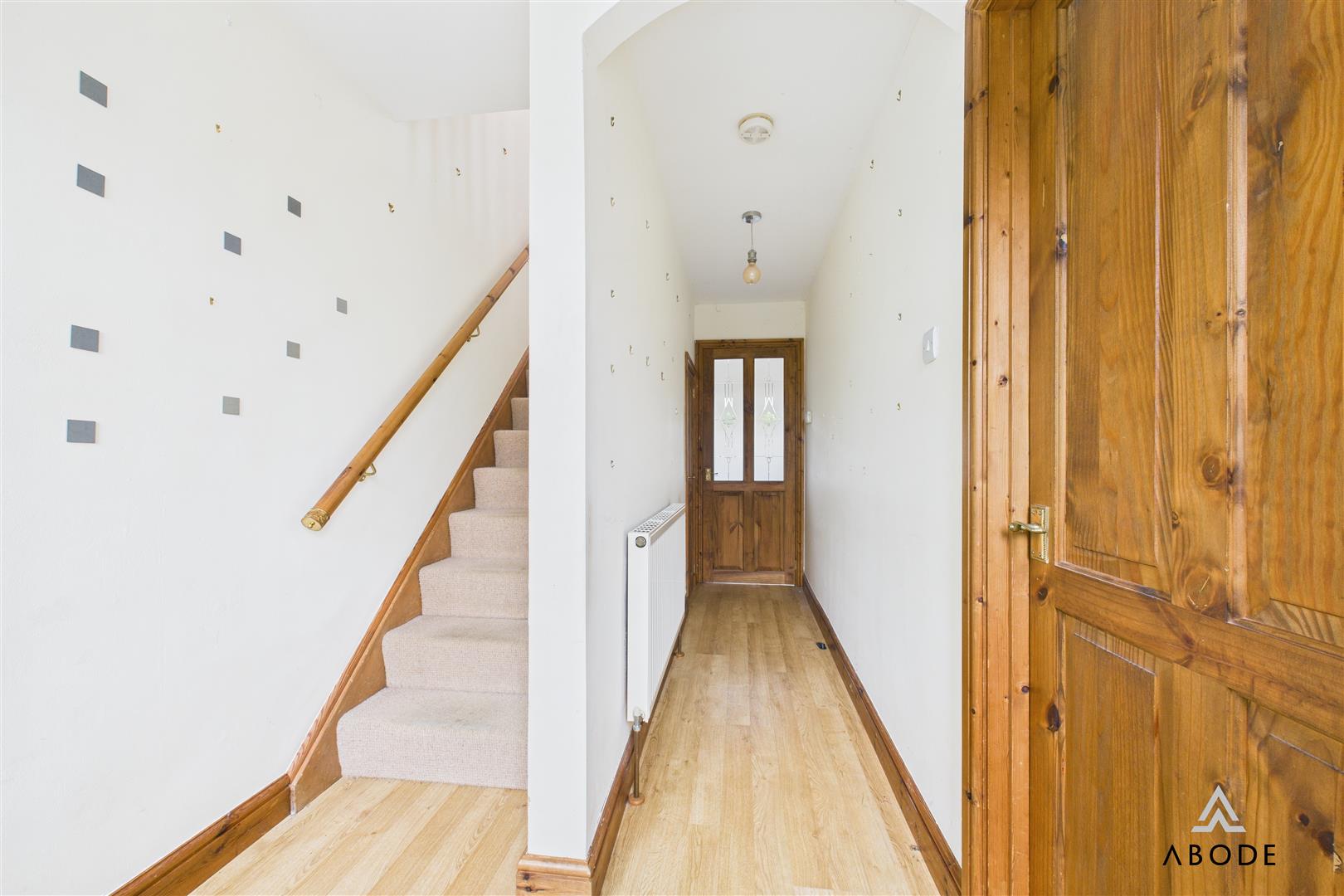 Upvc double glazed door into the hall with stairs to the first floor, under stairs storage cupboard, radiator and doors to -