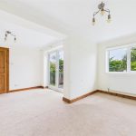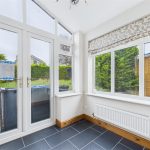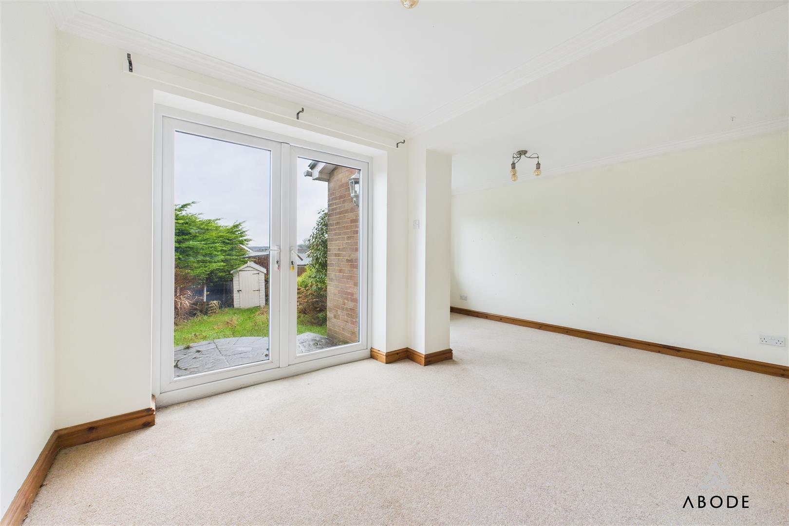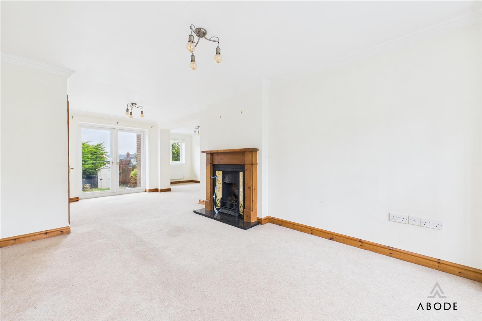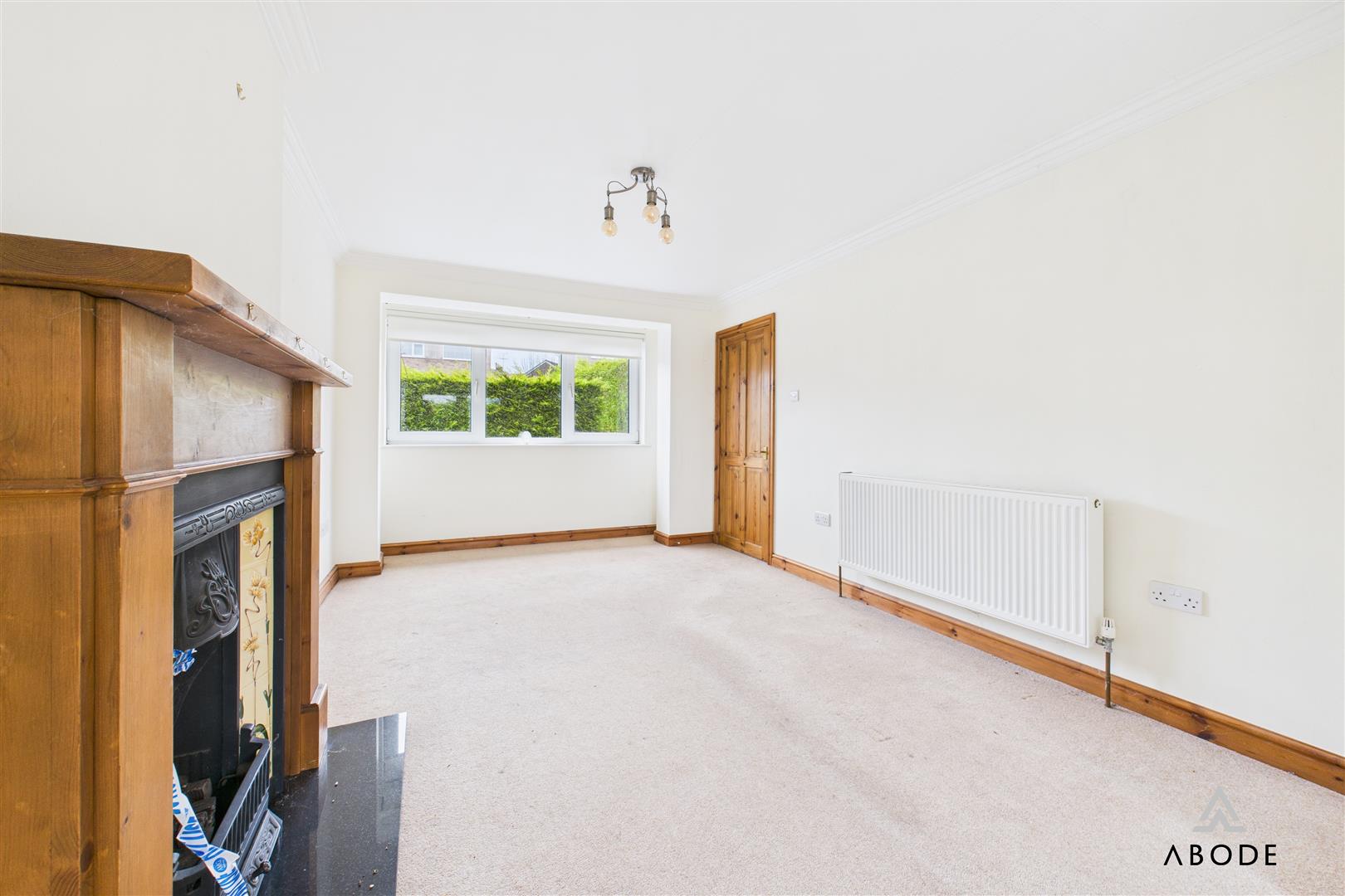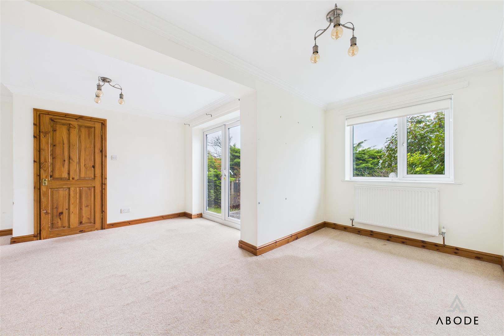 Feature living flame coal effect gas fire with cast iron insert and wood surround, radiator, upvc double glazed window to the front and French doors to the garden. Door tot he kitchen and open through to the dining area.