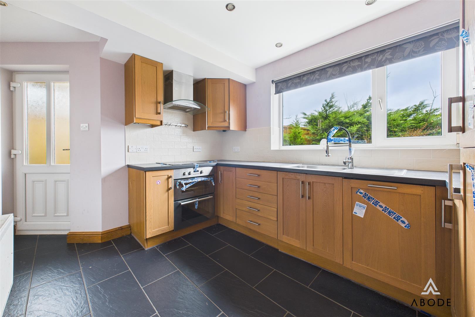Fitted wall mounted base and drawer units, work surfaces and a sink and drainer unit with mixer tap. Fitted electric double oven with electric hob and extractor fan. Integrated fridge freezer and dishwasher, upvc double glazed window to the rear, door to the hall and open through to the utility area.