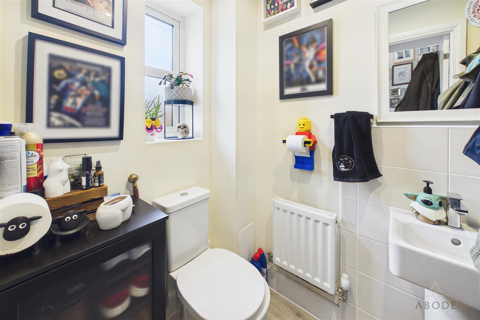 Low flush wc, wash hand basin, radiator and upvc double glazed window.