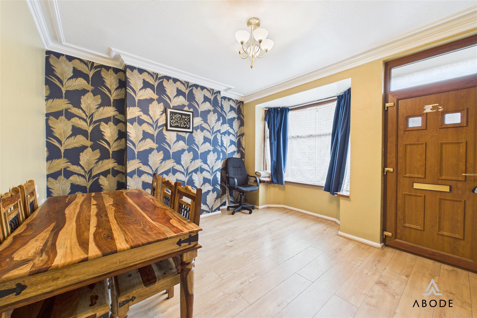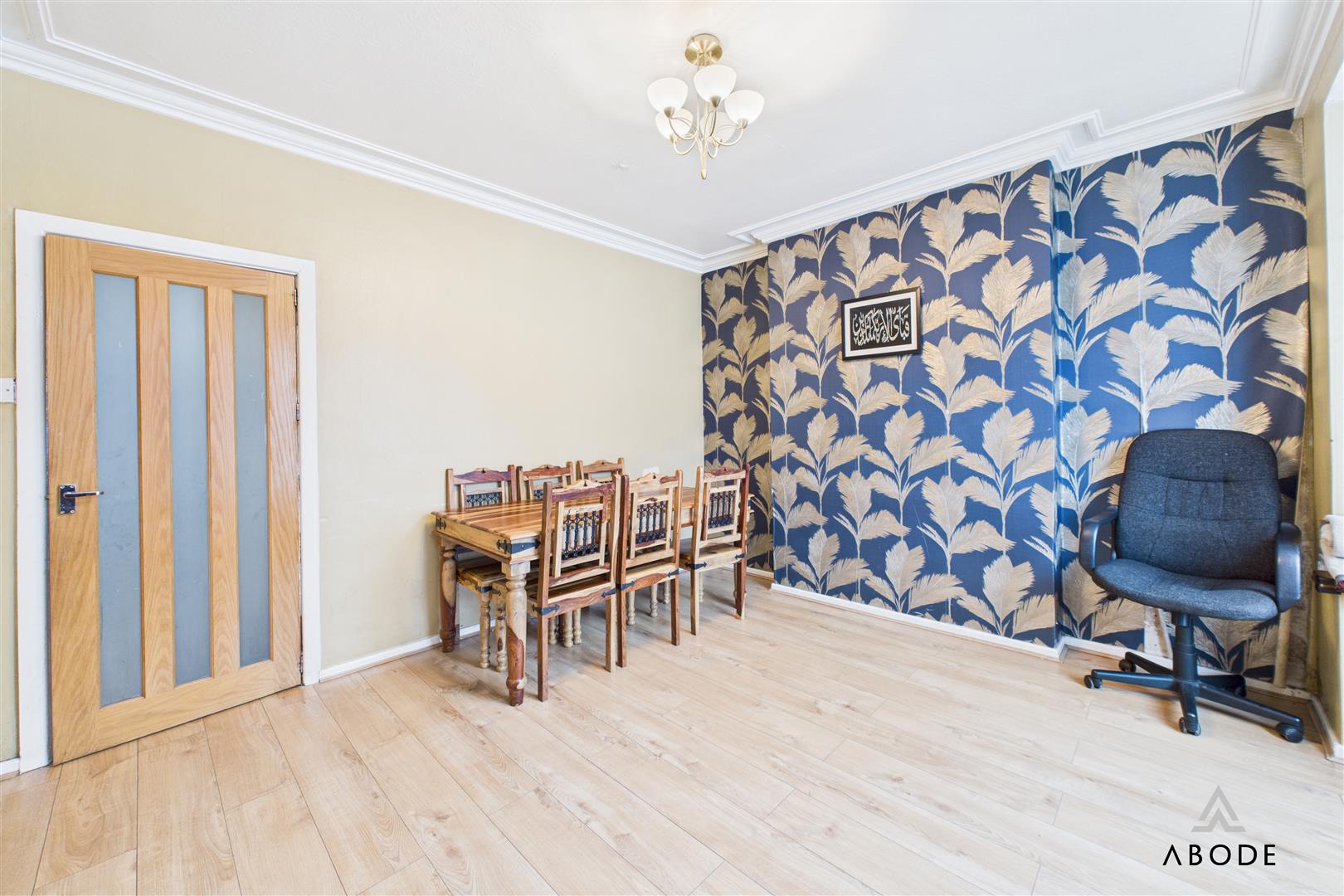 The property is entered through the front door into a welcoming dining room, positioned at the front of the home and benefiting from a bay window to the front elevation. This room comfortably accommodates a family dining table and provides direct access to the inner hallway.