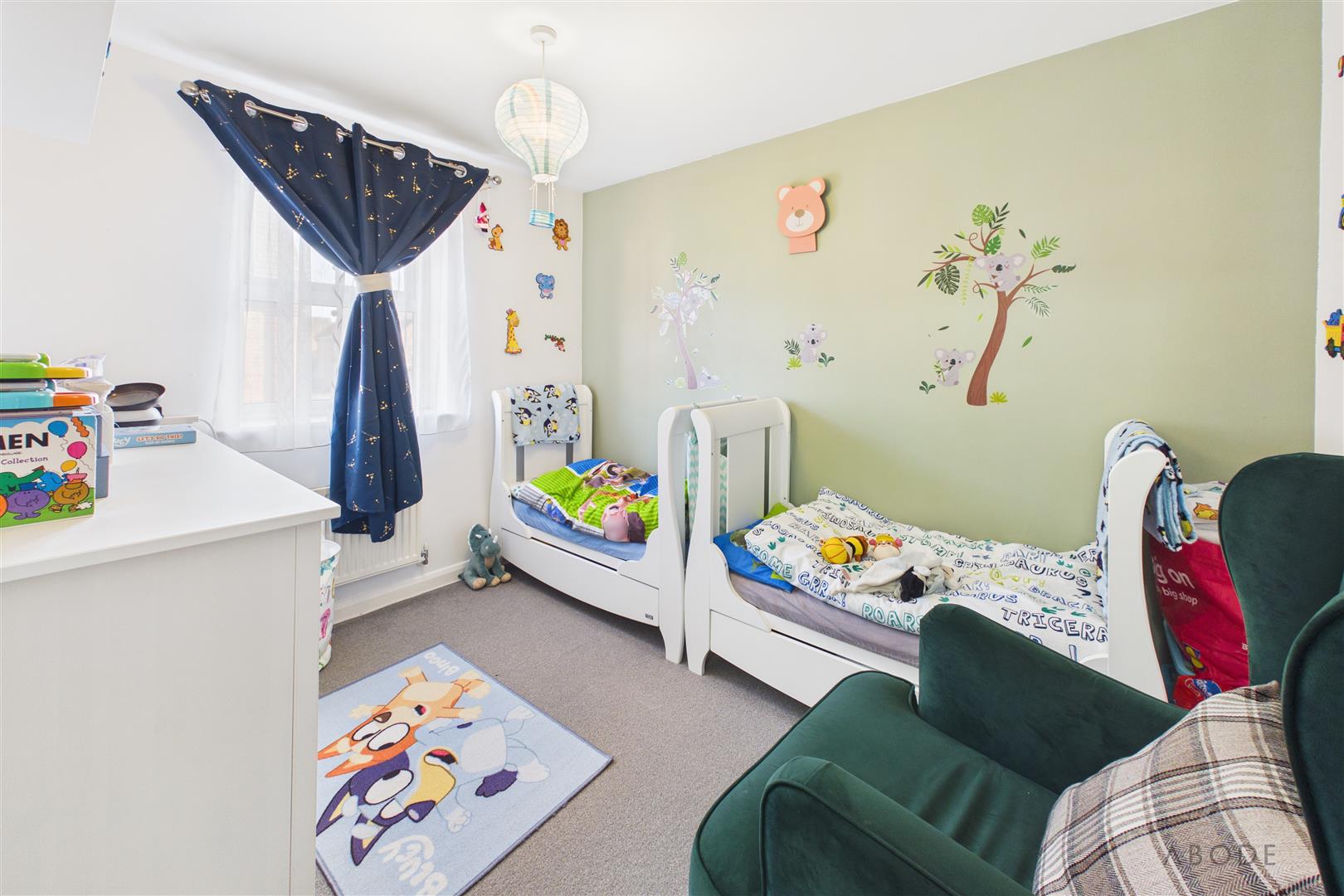 Front fore garden and an enclosed rear garden offered decked and paved seating areas and an artificial lawn, rear gate to the parking and a single garage.