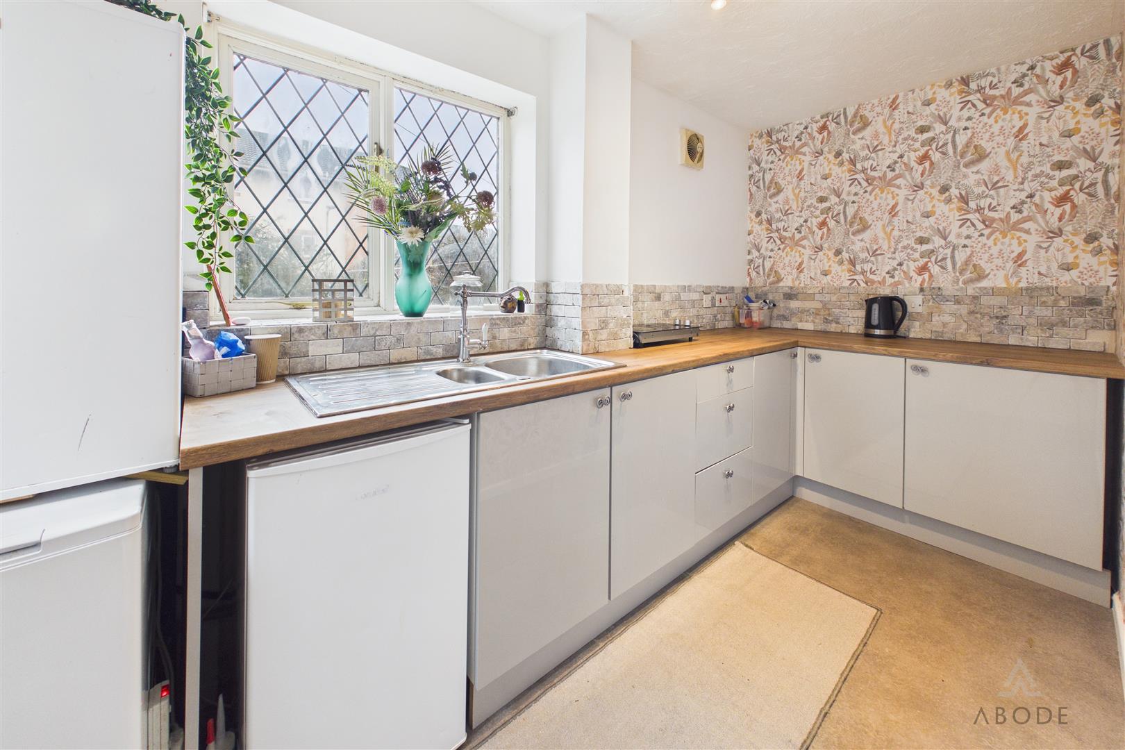 Fitted units with work surfaces, appliance spaces, upvc double glazed window.