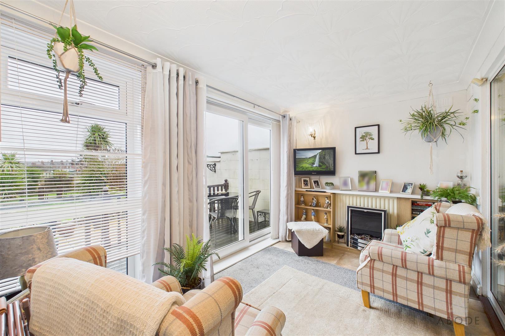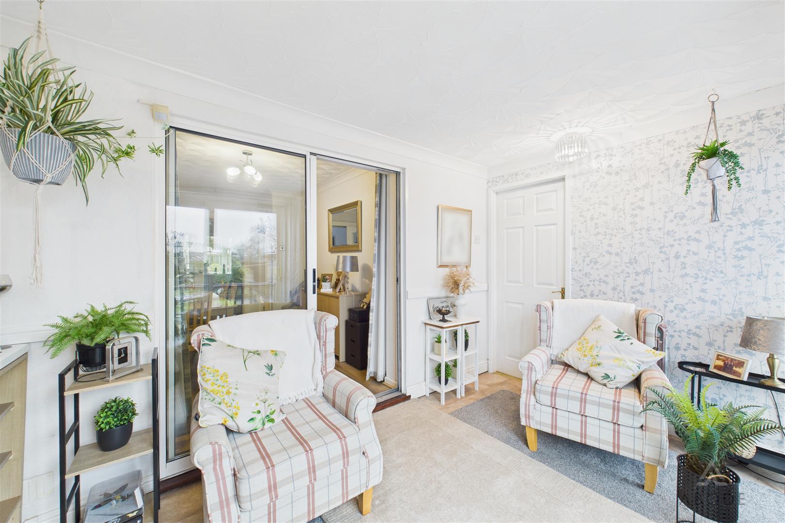 Energy efficient glazed bay window to the front elevation, central heating radiator, fireplace providing space for an electric fire, sliding door leading into;-