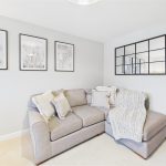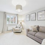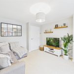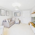 The living room sits to the front with a broad window to the front elevation, tasteful décor and a door through to the inner lobby where stairs rise to the first floor.