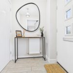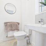 A composite door opens to a welcoming hallway with tiled flooring and doors leading off to the cloakroom and living room. The guest cloakroom includes a pedestal wash-hand basin and WC.