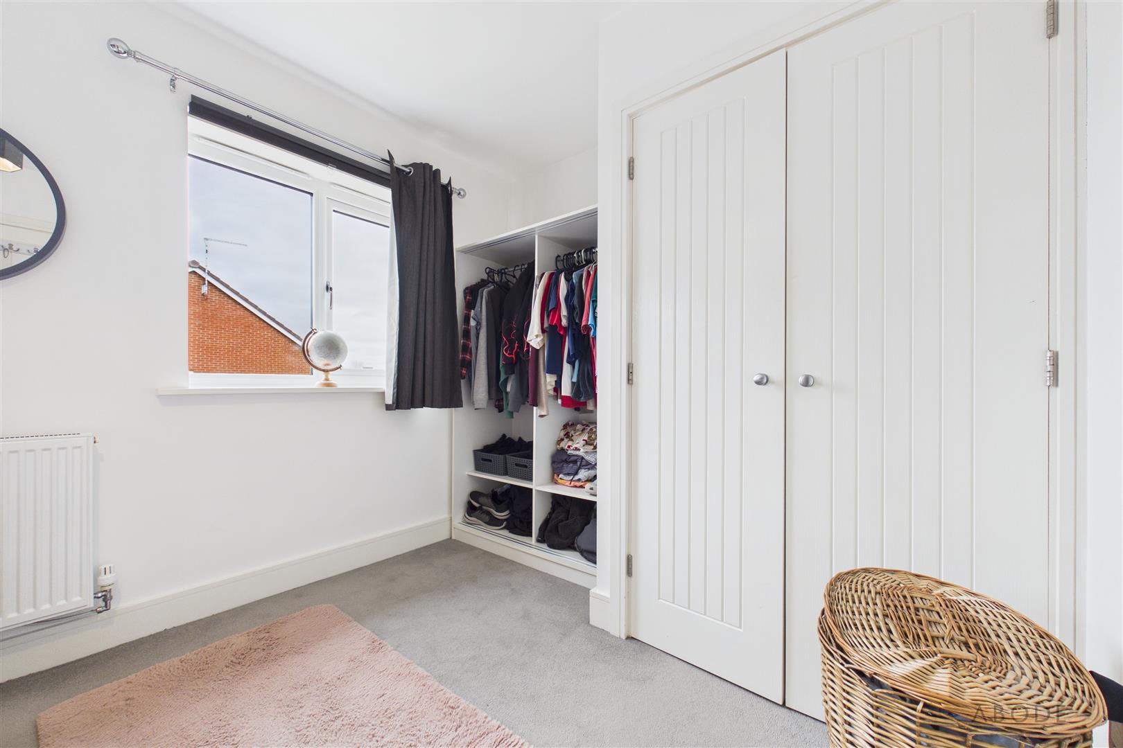 With two UPVC double glazed windows to the rear elevation, central heating radiator, and built-in double wardrobe comprising hanging rails and shelving.