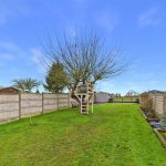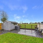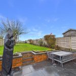 To the front, the property benefits from a driveway providing off-street parking and access to a gated side entrance. The rear garden is a particular highlight, offering a good degree of privacy and an excellent size for families. Immediately to the rear of the house is a paved patio area, ideal for outdoor seating and dining, which leads onto a well-maintained lawn. The garden is enclosed by fencing and features a timber shed and established planting, making it both practical and enjoyable throughout the year.