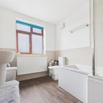 The first-floor landing provides access to three well-proportioned bedrooms and the family bathroom. The main bedroom is a generous double room with a rear-facing window and space for freestanding furniture. Bedroom two is also a comfortable double, while the third bedroom is ideal for use as a child’s room, home office or nursery.