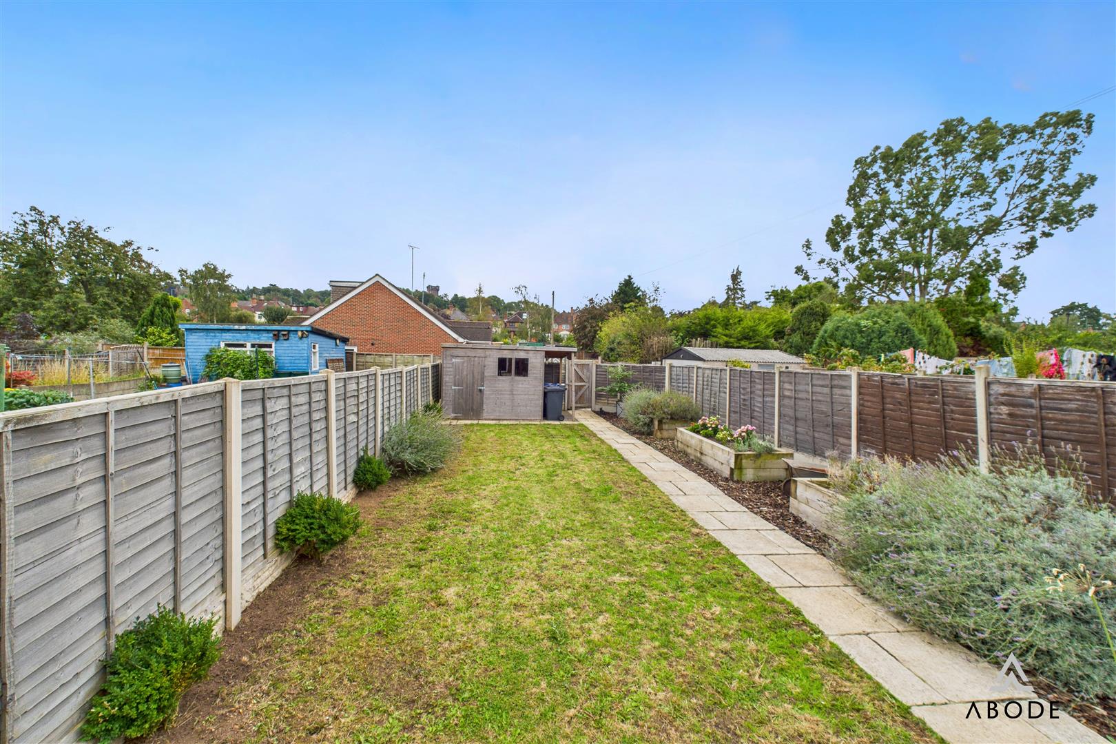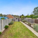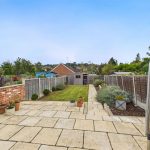 Externally, the property offers a beautifully landscaped and private rear garden. A large stone-paved patio provides ample space for outdoor seating and entertaining, with steps leading down to a long lawn bordered by planting beds and enclosed by timber fencing. A timber shed is positioned at the far end of the garden, with a gated rear entrance providing access to the off-street parking area. To the front, the property presents an attractive brick façade in keeping with the surrounding period homes.