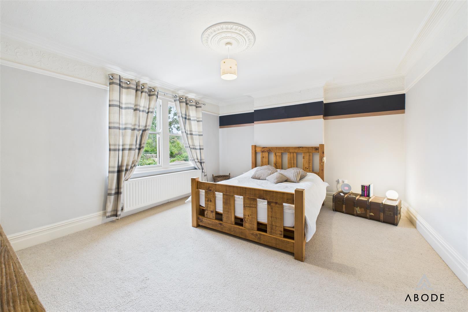 The first-floor landing leads to four well-proportioned bedrooms. The master bedroom is particularly spacious, with a rear facing window and elegant ceiling cornicing. Bedrooms two and three are also good-sized doubles, both offering flexibility as children’s rooms, guest bedrooms, or home offices. Bedroom four is a smaller room, ideal as a study or dressing room.