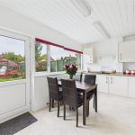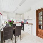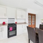 The kitchen is fitted with a selection of matching eye and base level units with work surfaces over, incorporating a stainless steel sink and drainer, gas hob, and integrated gas oven. There is space for further appliances, tiled splashbacks, and a double-glazed window to the rear overlooking the garden.