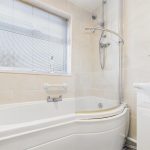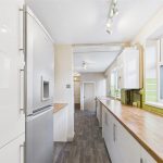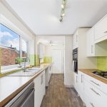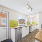 The accommodation opens into a spacious lounge diner, a bright and welcoming living space offering ample room for both seating and dining furniture. From here, an inner hallway provides access to the staircase rising to the first floor and leads through to the kitchen. The kitchen is fitted with a range of matching wall and base units, complemented by work surfaces and tiled splash backs, with space for appliances. Beyond the kitchen is a further useful section, ideal for storage or utility use, and a ground-floor bathroom fitted with a white three-piece suite.