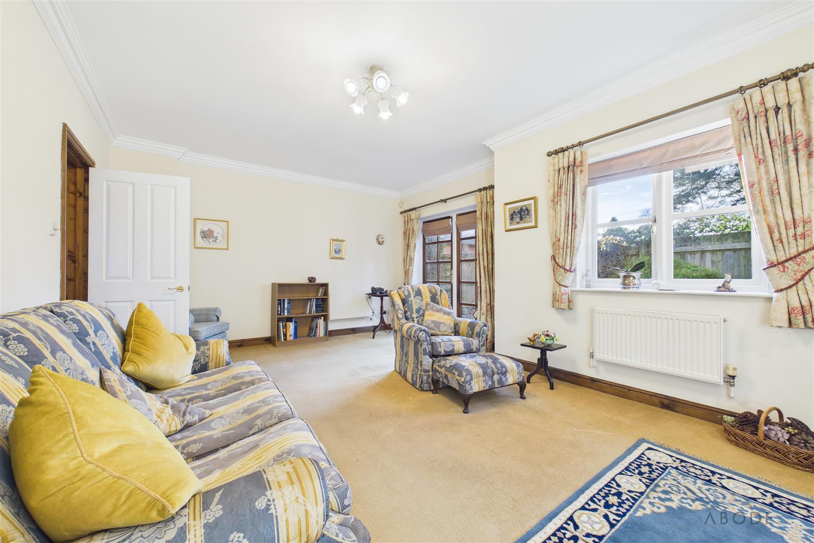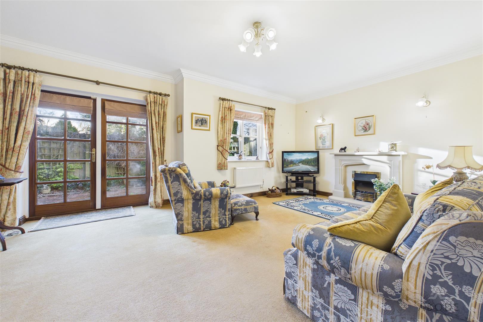 With a double-glazed window to the rear elevation and a set of double-glazed, double-panel glass doors opening to the rear garden, the lounge enjoys views over the outdoor space and an abundance of natural light. A focal point electric fireplace with a composite sandstone-effect Adam-style surround adds character, while two central heating radiators provide warmth. Additional features include a telephone point and TV aerial point.