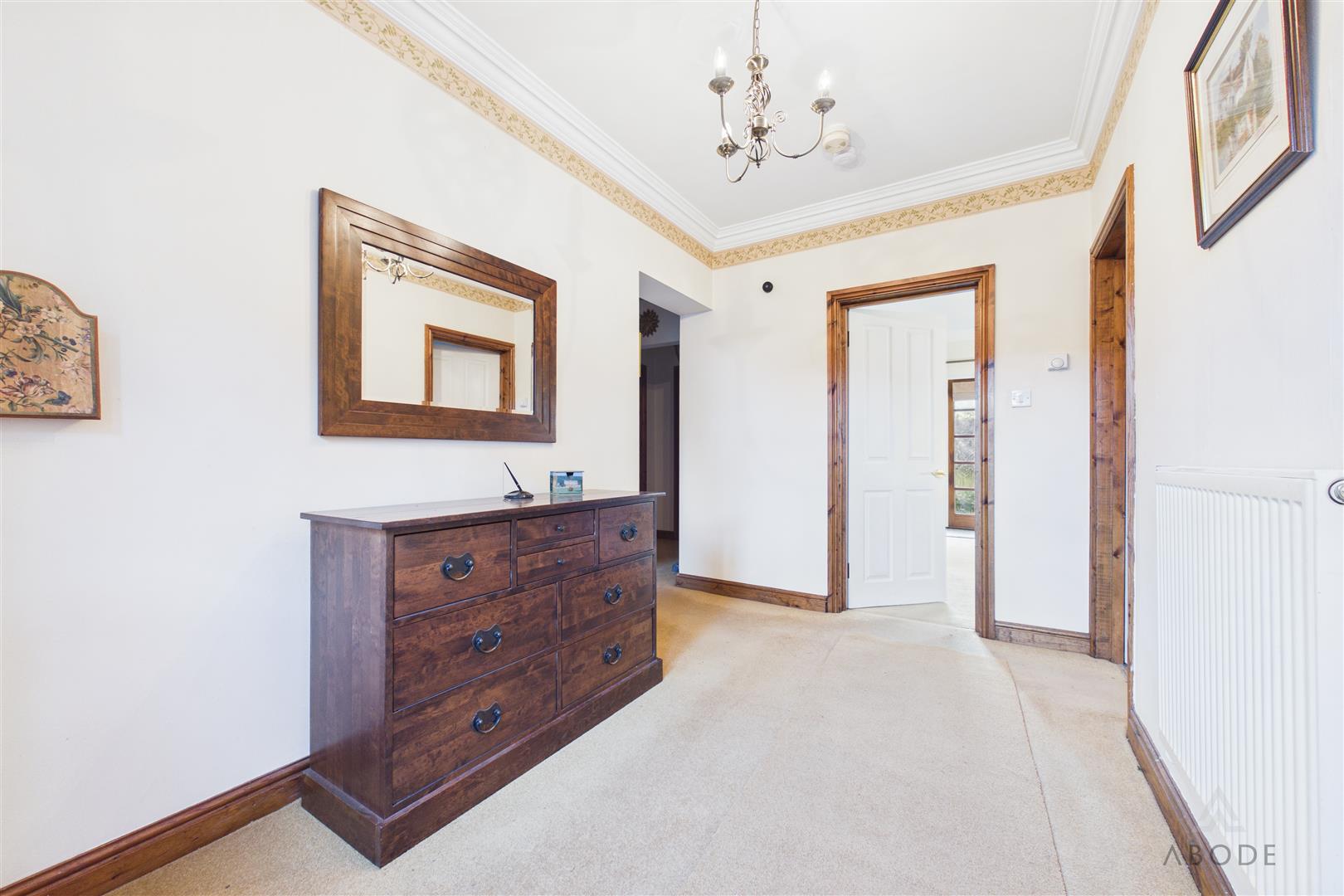With a timber glazed front entry door and adjoining double-glazed side window to the front elevation, central heating radiator, smoke alarm, and meter cupboard housing the electrical consumer unit and electric meter. Two built-in utility and airing cupboards offer excellent storage, with internal doors leading to the principal rooms.