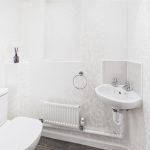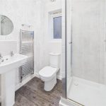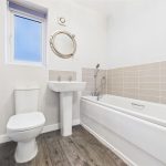 The main bathroom presents a modern three-piece suite with contemporary tiling and a window to the rear.