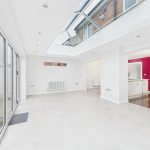 A welcoming entrance hall leads to the lounge, positioned to the front elevation and finished with Italian tiled flooring that continues throughout much of the ground level. The lounge opens directly into the dining kitchen, creating a superb sense of flow.