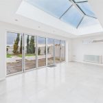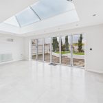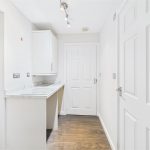 A utility room offers further workspace, a quartz-effect surface, appliance space, side access, and leads through to the boot room. Fitted with high-gloss cabinetry, further storage cupboards, space for an additional fridge freezer, and matching high-quality Italian flooring. A cloakroom/WC completes the ground floor.