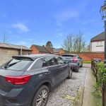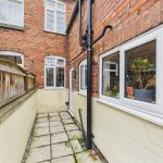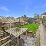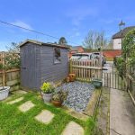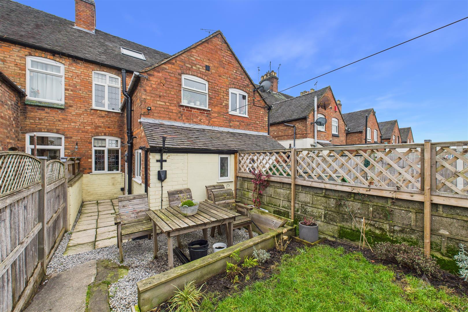 To the front of the property there is a gravelled and hard-landscaped area with established planting, enclosed by metal fencing and gate, with a shared pedestrian pathway providing access to Gas Street. To the rear, the garden features a lawned area with planted borders, complemented by hard landscaping and enclosed by brick and timber boundaries. A timber garden shed provides useful storage, while a driveway to the rear offers off-road parking for two vehicles.