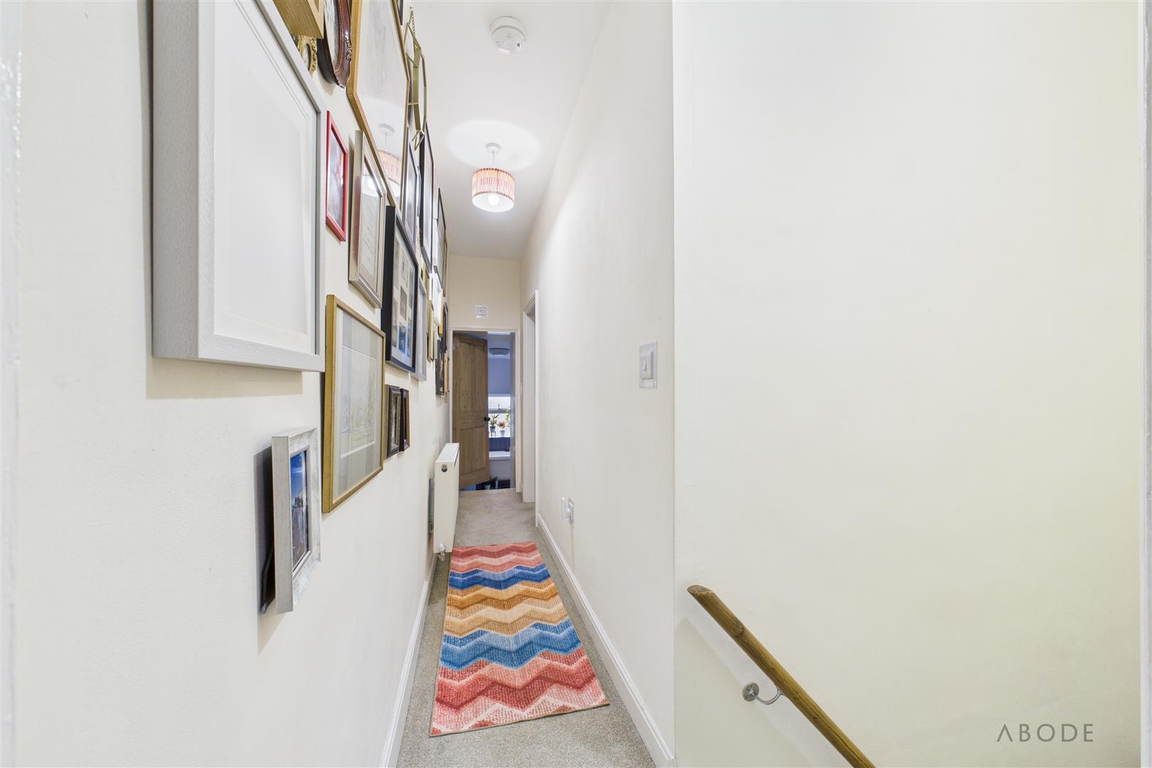 The landing provides access to the loft space via a loft hatch and features a central heating radiator. Internal sliding doors lead to the first-floor accommodation.