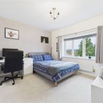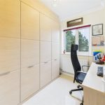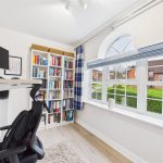 Currently arranged as a study, this room enjoys an oversized UPVC triple-glazed window to the front elevation, a central-heating radiator and a built-in wardrobe with hanging rails and shelving.