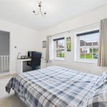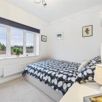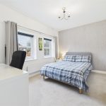 Positioned at the rear of the property, this bedroom features a UPVC triple-glazed window with integrated roller blind, a central-heating radiator and a double fitted wardrobe with hanging and shelving space.