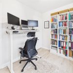 A practical and versatile room ideal for home working. A UPVC triple-glazed window to the rear elevation provides plenty of natural light, complemented by tiled flooring and a central-heating radiator. The room is fitted with a comprehensive range of bespoke storage cupboards incorporating shelving and hanging space.