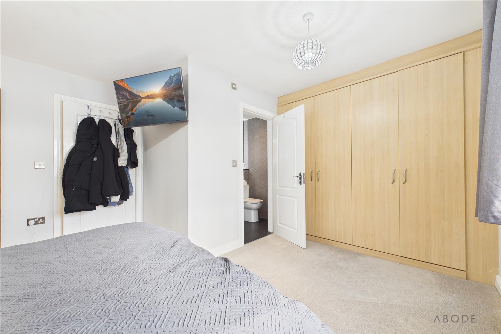 Upstairs, the property offers three well-proportioned bedrooms. The principal and second bedrooms both benefit from built-in wardrobes and en-suite shower rooms, while the third bedroom is ideal for children, guests or home working. A contemporary family bathroom completes the first floor.