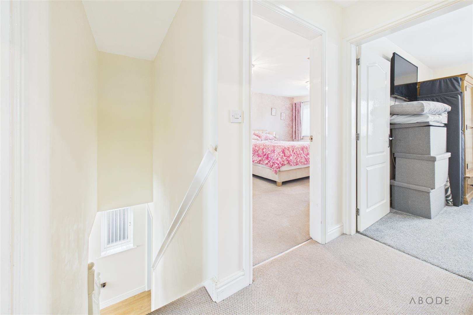 Providing access to the loft via hatch, smoke alarm and doors leading to: