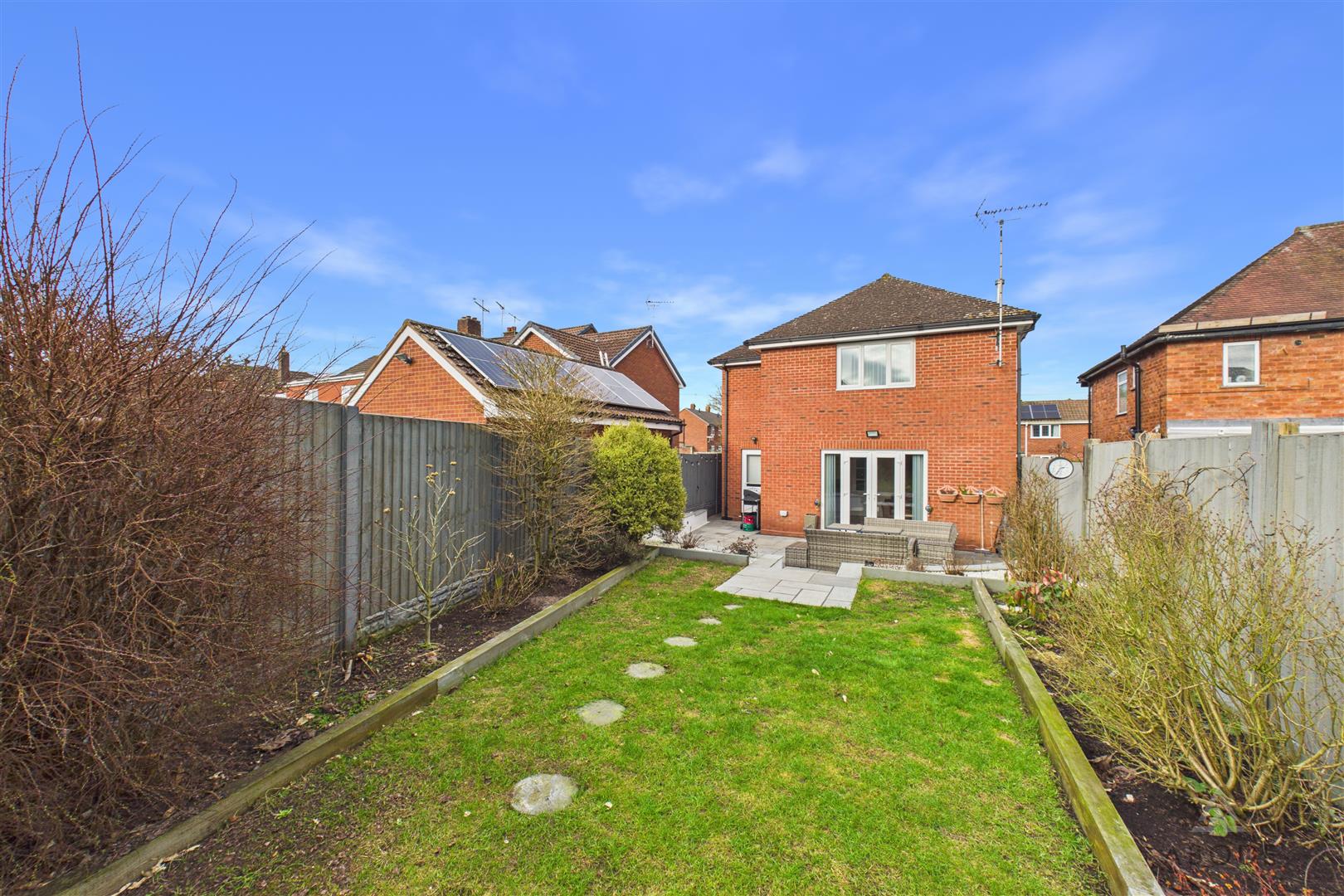 Externally, the landscaped rear garden has been thoughtfully designed to provide an excellent entertaining space. An extended patio area offers the perfect setting for summer evenings and outdoor dining, with the remainder of the garden mainly laid to lawn—creating a generous, low-maintenance space for relaxing and family enjoyment.