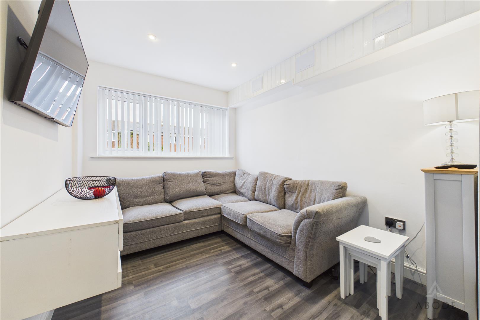 A versatile reception room with a UPVC double-glazed window to the front elevation. Currently used as a living and office space, this room would also suit use as a study, playroom or additional reception room. Features include built-in storage with eye-level shelving, thermostat control and ceiling spotlights.