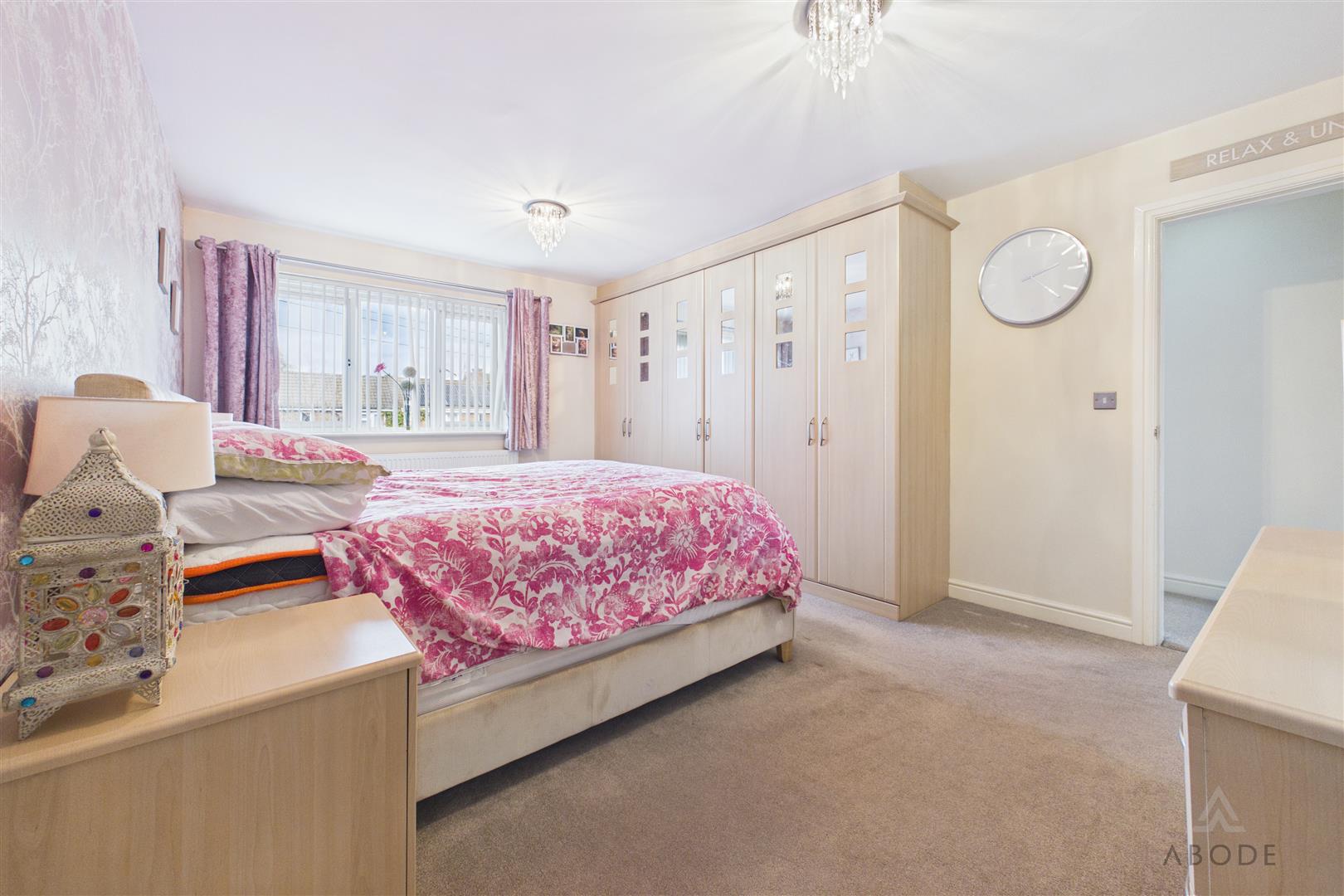 With a UPVC double-glazed window to the rear elevation, central heating radiator and a range of built-in double wardrobes with hanging rails and shelving. Door leading to: