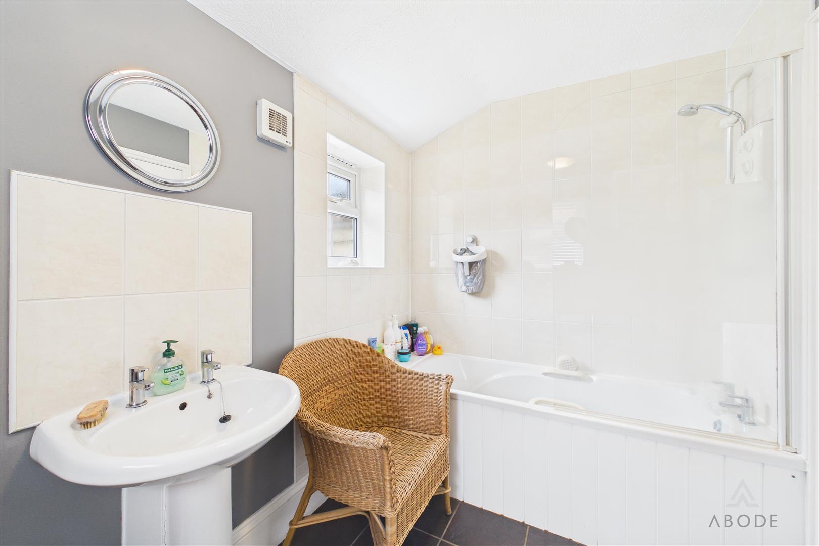 Completing the ground floor is the spacious family bathroom which is fitted with a three-piece suite comprising a bath with shower over, wash hand basin and low level WC, complemented by tiled flooring, partially tiled walls and a double glazed window to the rear elevation.