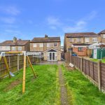 To the front, the property benefits from a block-paved driveway providing off-street parking. The rear garden is a particular feature of the home, offering a long, enclosed space with a decked seating area directly off the rear of the property, leading onto a lawned garden beyond. The garden is enclosed by timber fencing and offers ample space for children’s play, outdoor entertaining or further landscaping if desired. A garden shed provides useful outdoor storage.