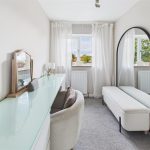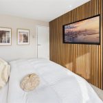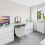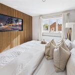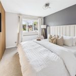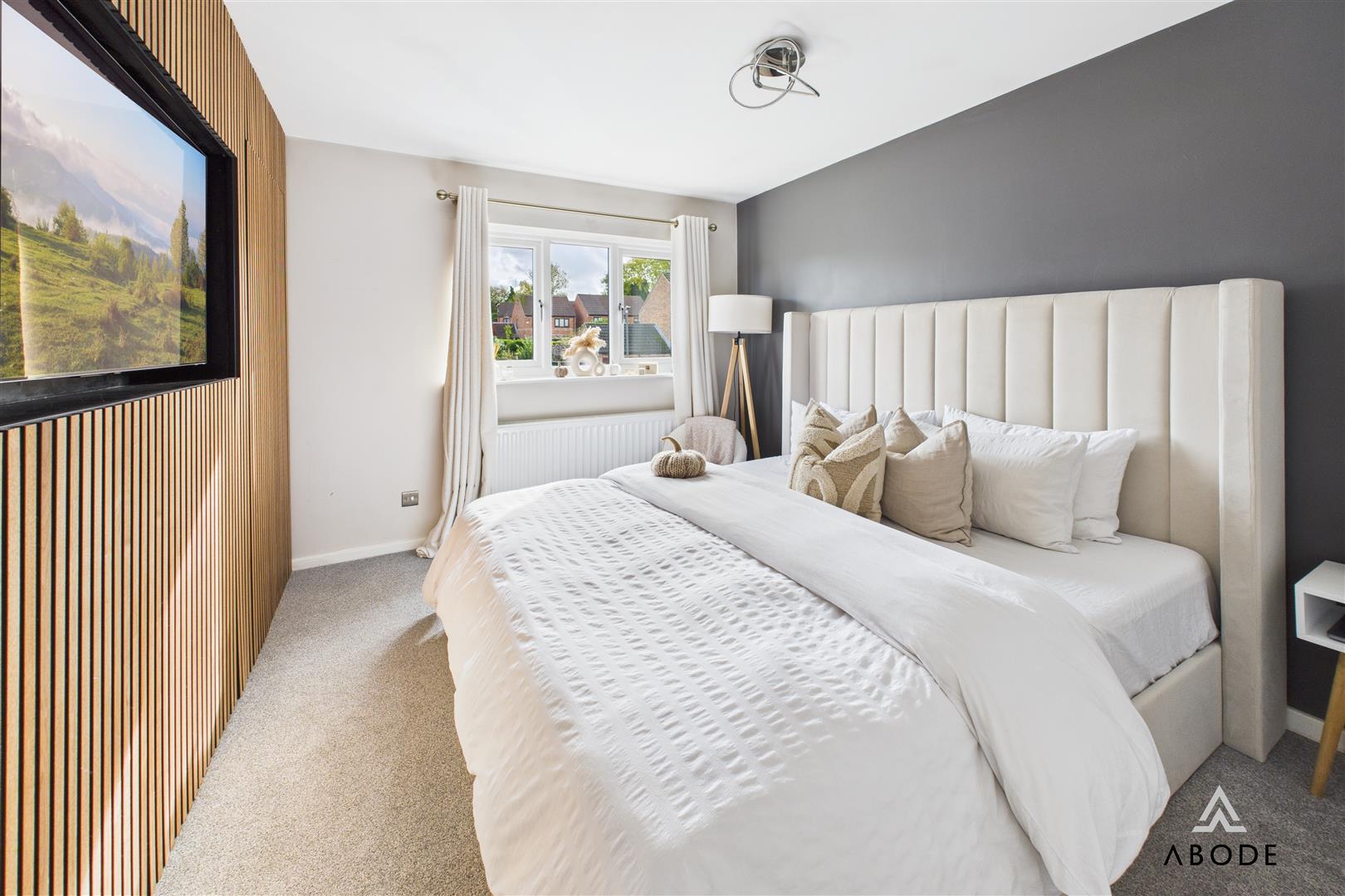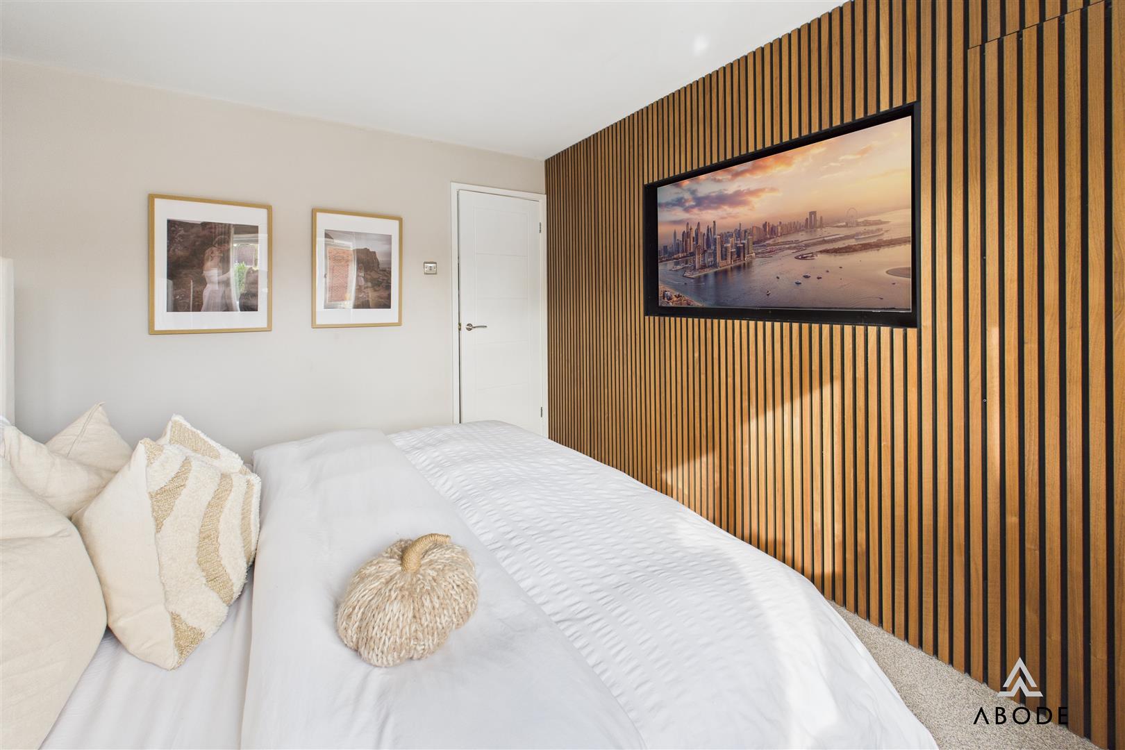 Upvc double glazed window to the front and a radiator. Feature wall with hidden push door into a walk-in wardrobe.