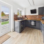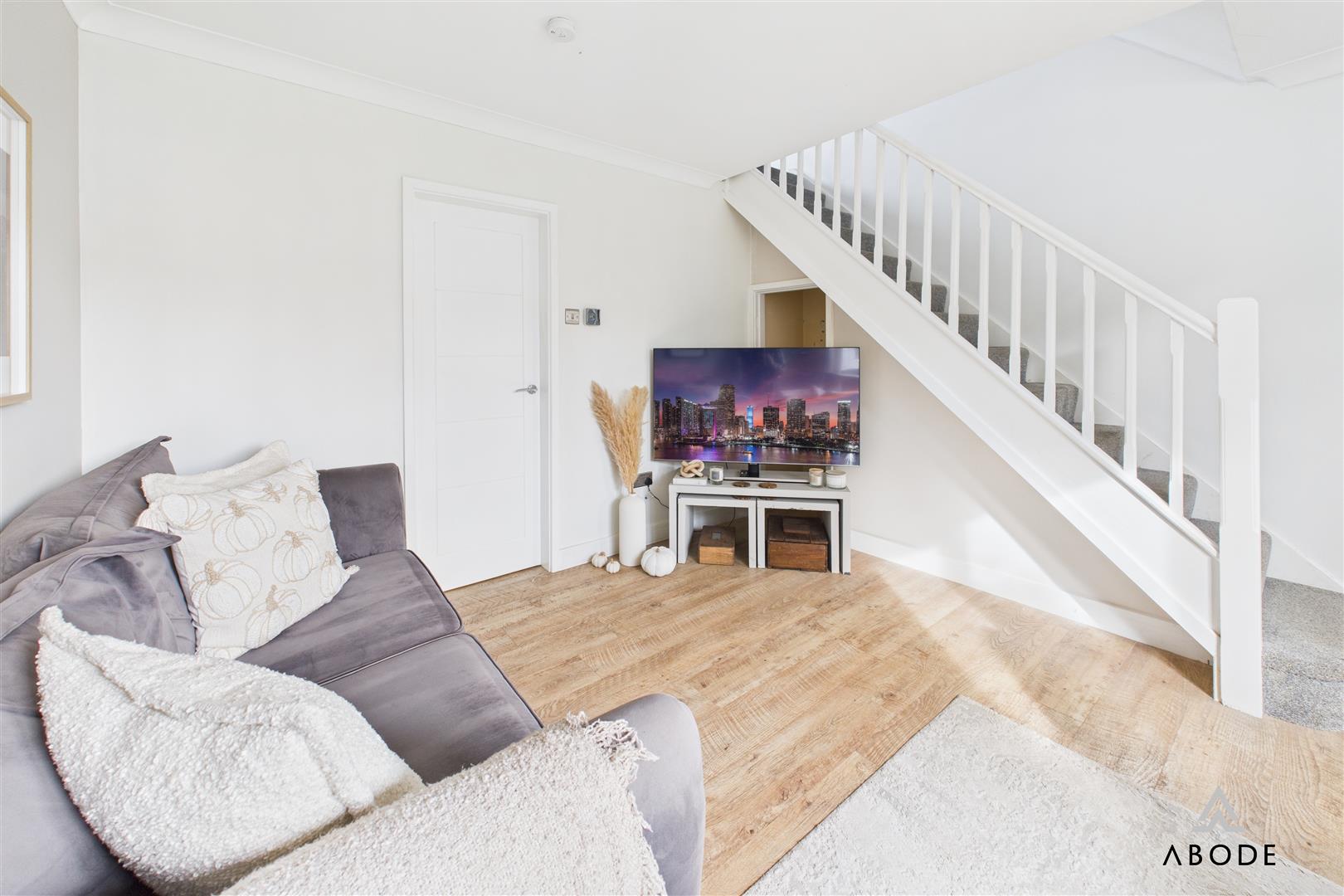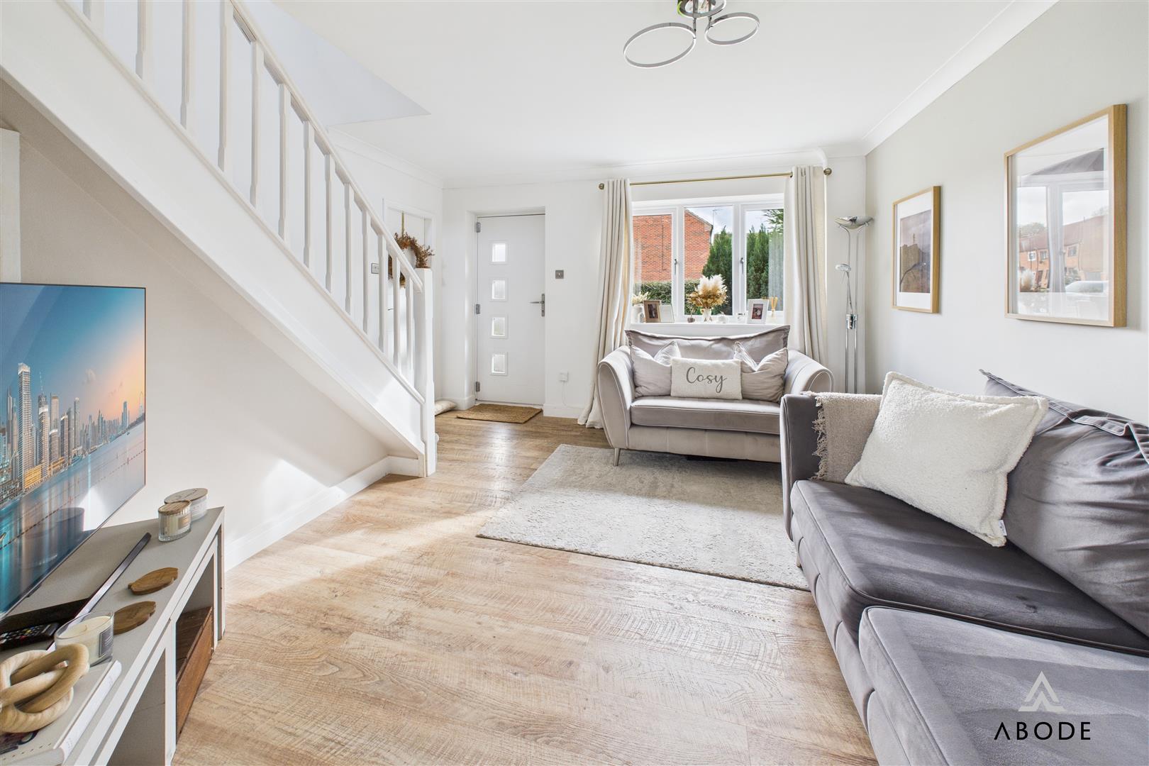 Upvc double glazed window to the front, radiator, wood effect flooring, stairs to the first floor, under stairs storage cupboard, door to the garage and kitchen diner.