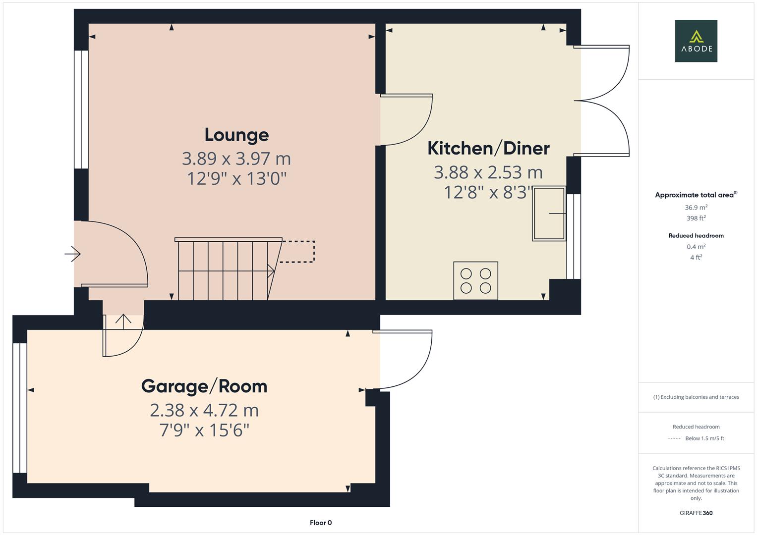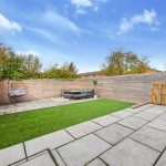 The garage door has been replaced for a window, this could be put back. Door onto the garden.